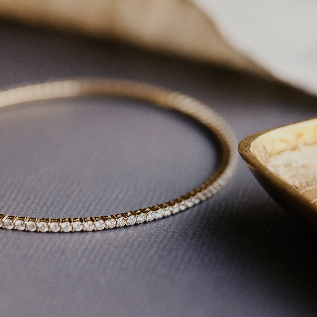 This 14k gold bracelet features 1.44 cttw round diamonds in a eternity design.