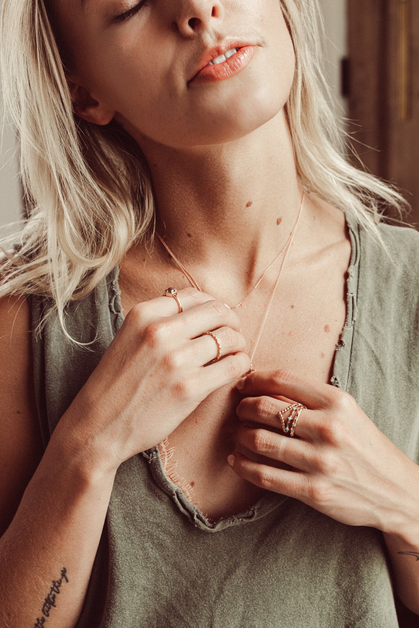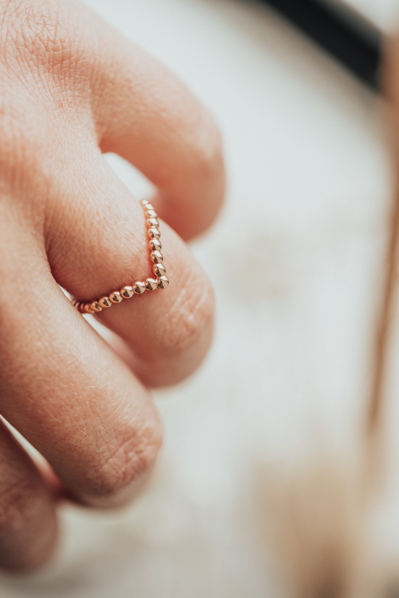 This 14k gold beaded tracer band is an excellent addition to any band stack or a subtle gold accent to your wedding set.
