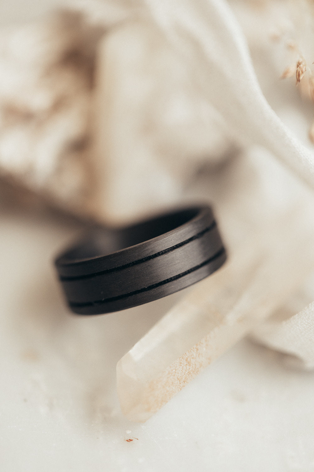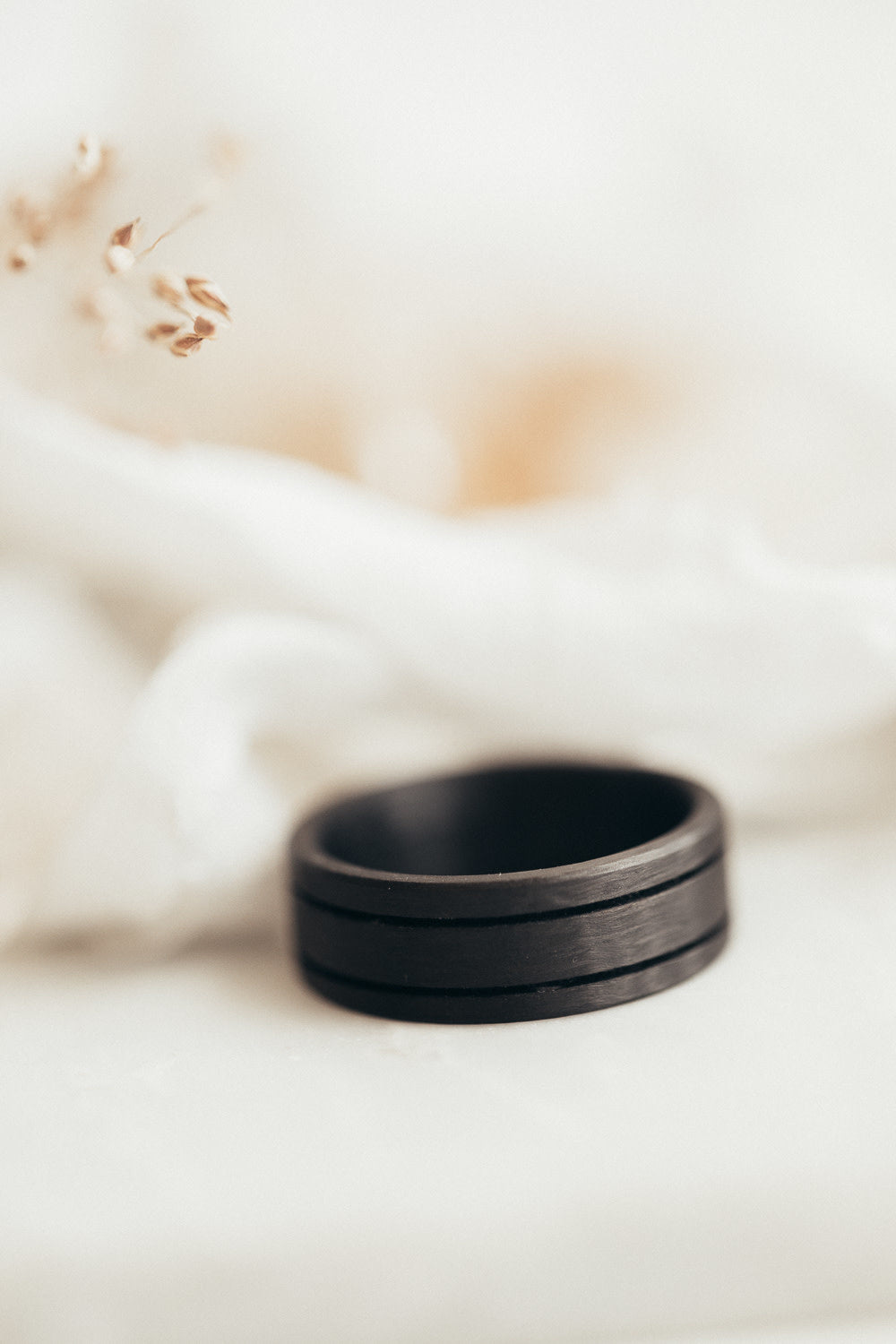 The Cameron Stripe Carbon Fiber Band features a flat band profile and is made from the same carbon fiber used in a wide range of lightweight, durable products.