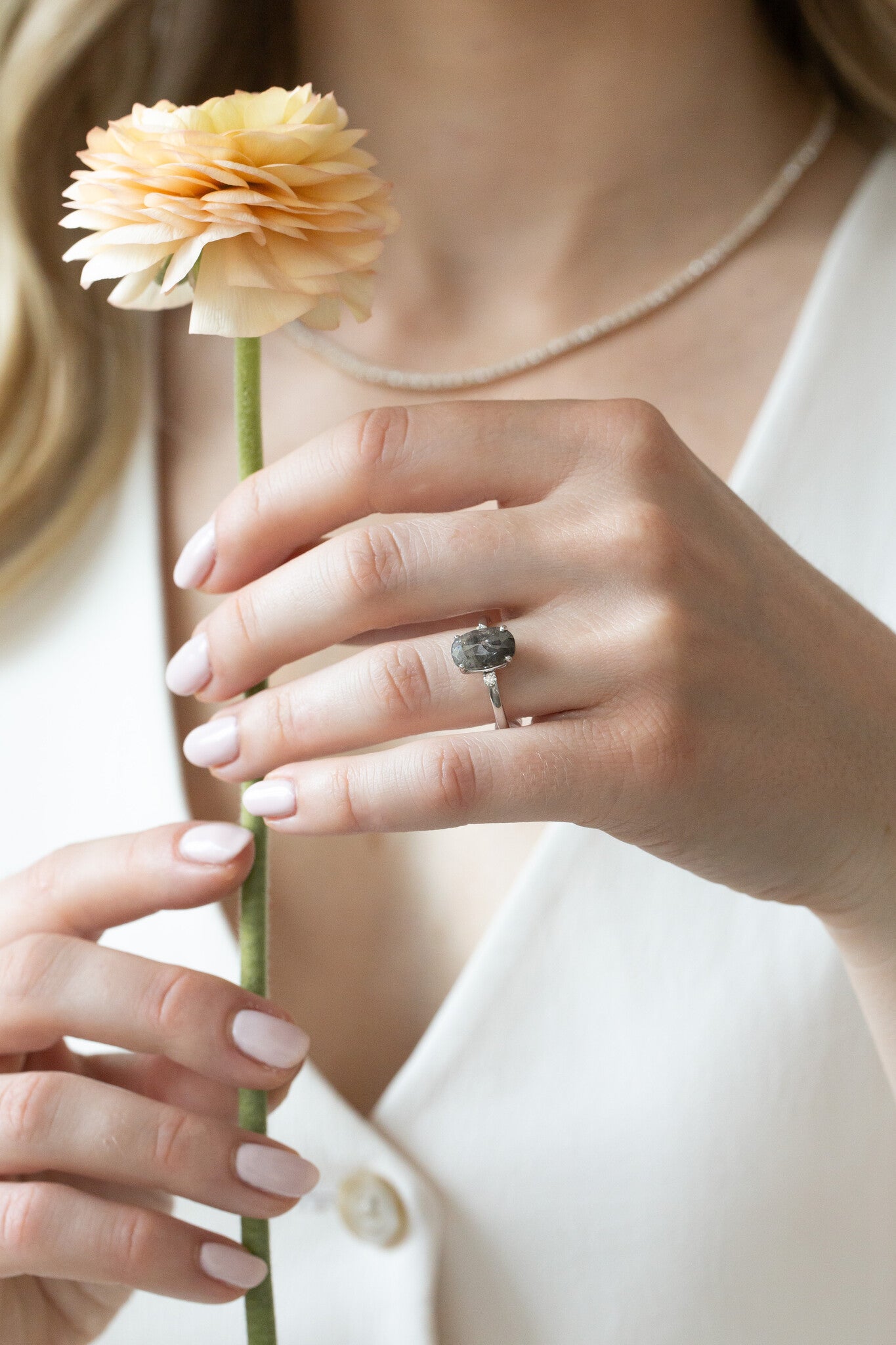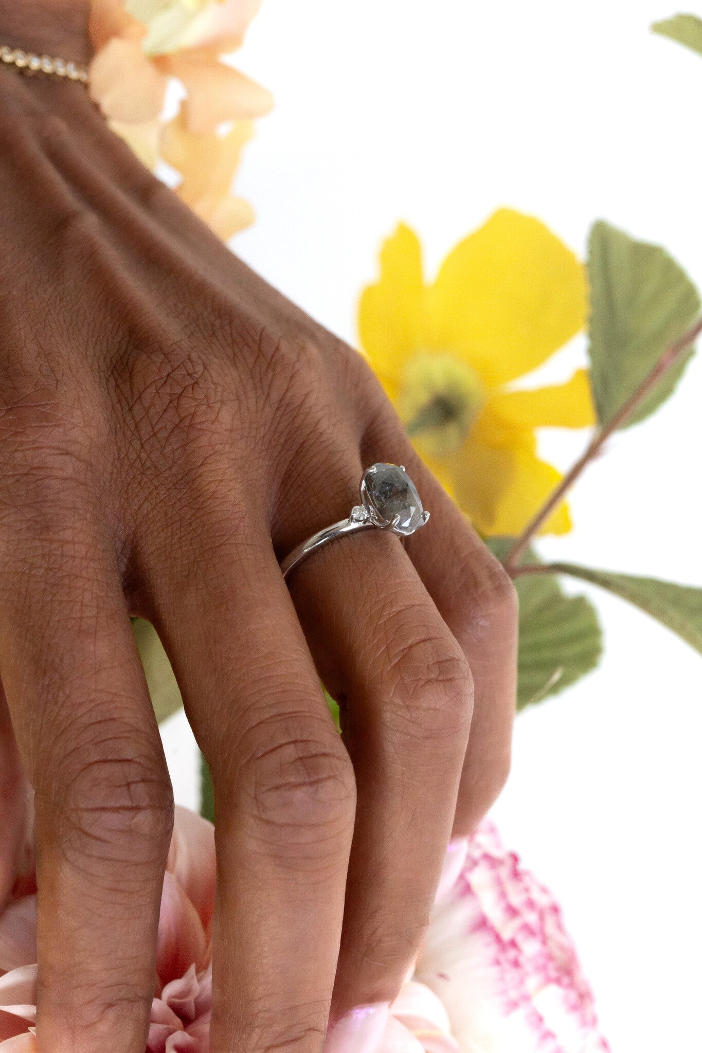The Isla 2.91 ct Oval Galaxy Diamond with Side Stones Ring