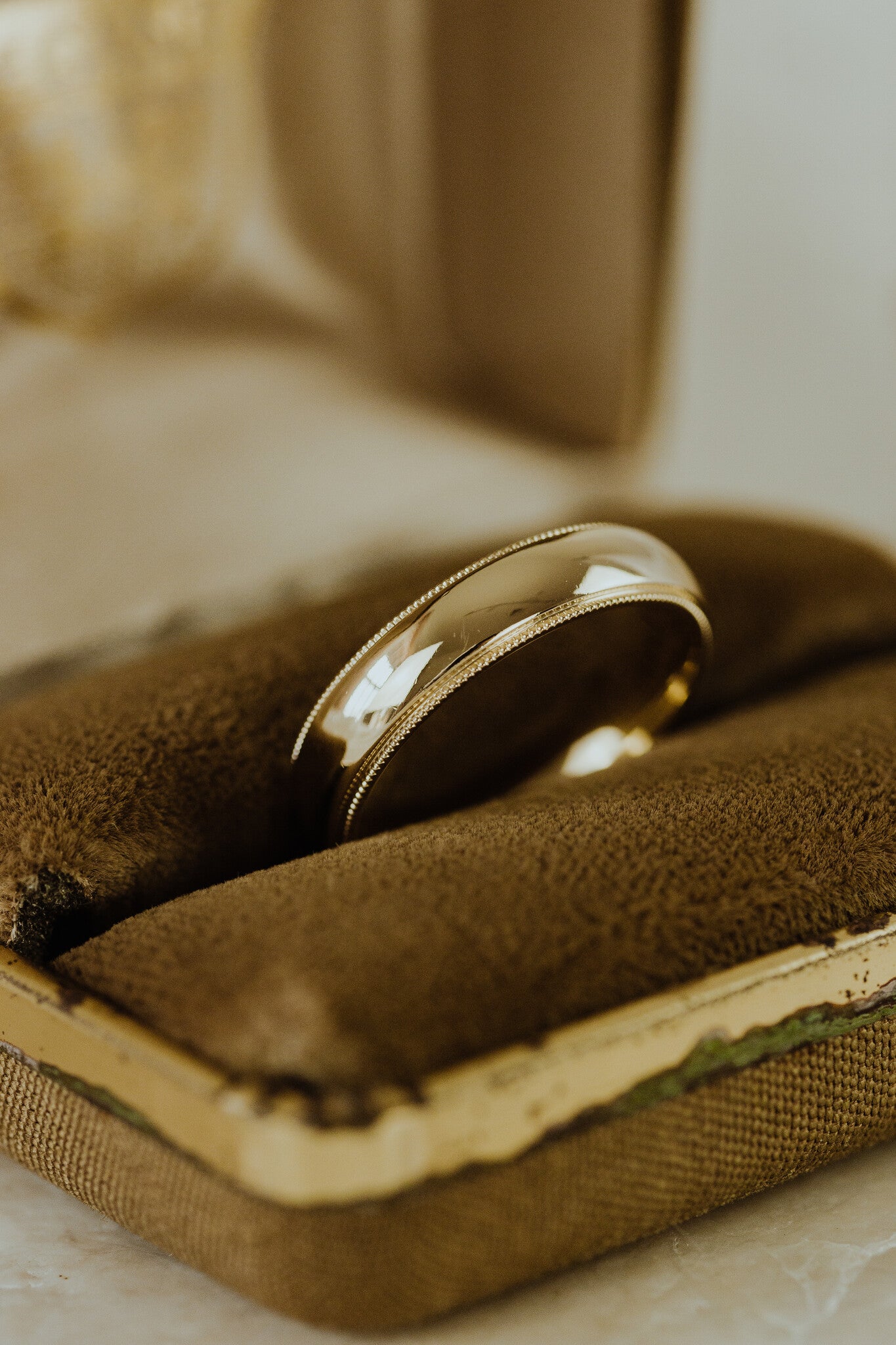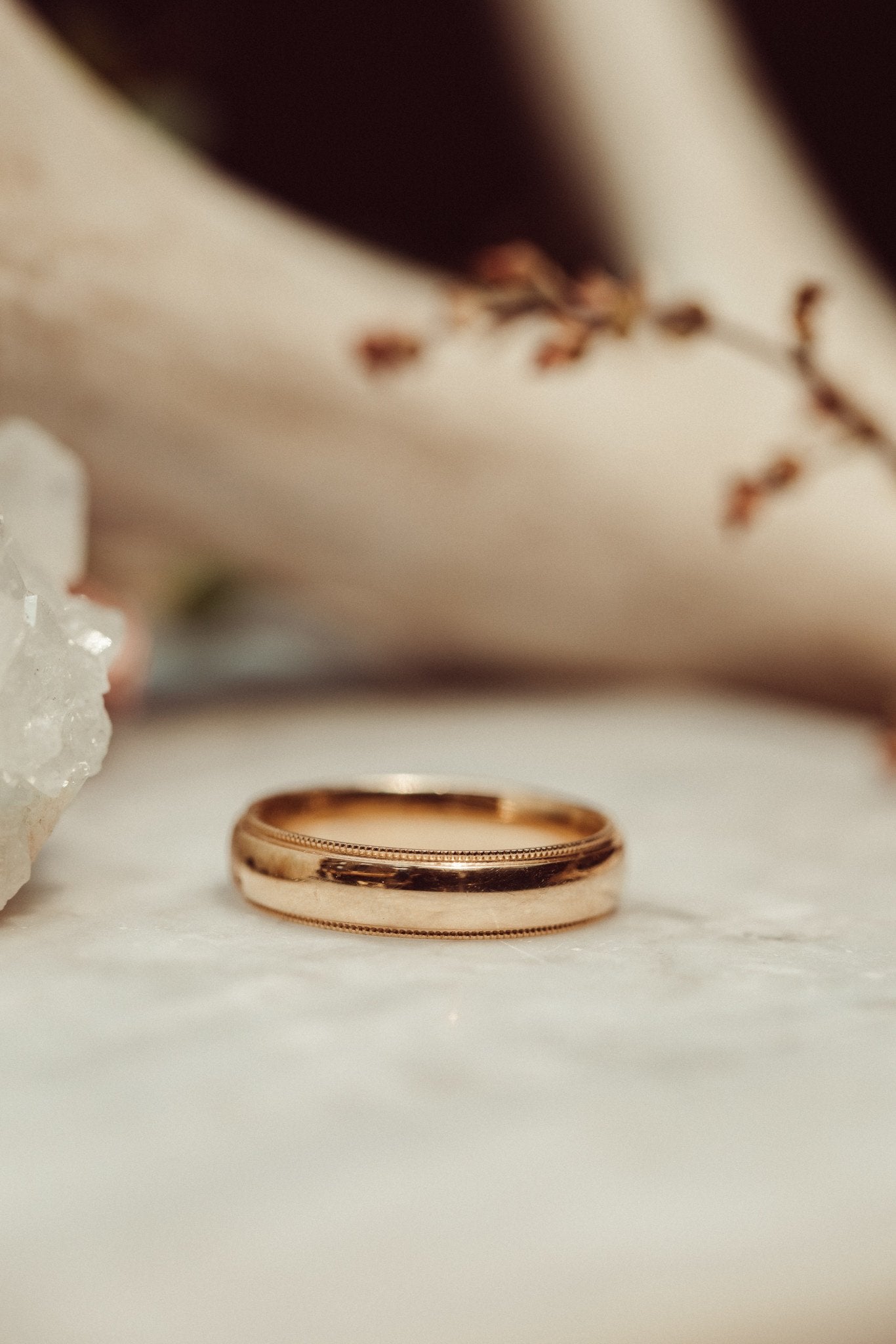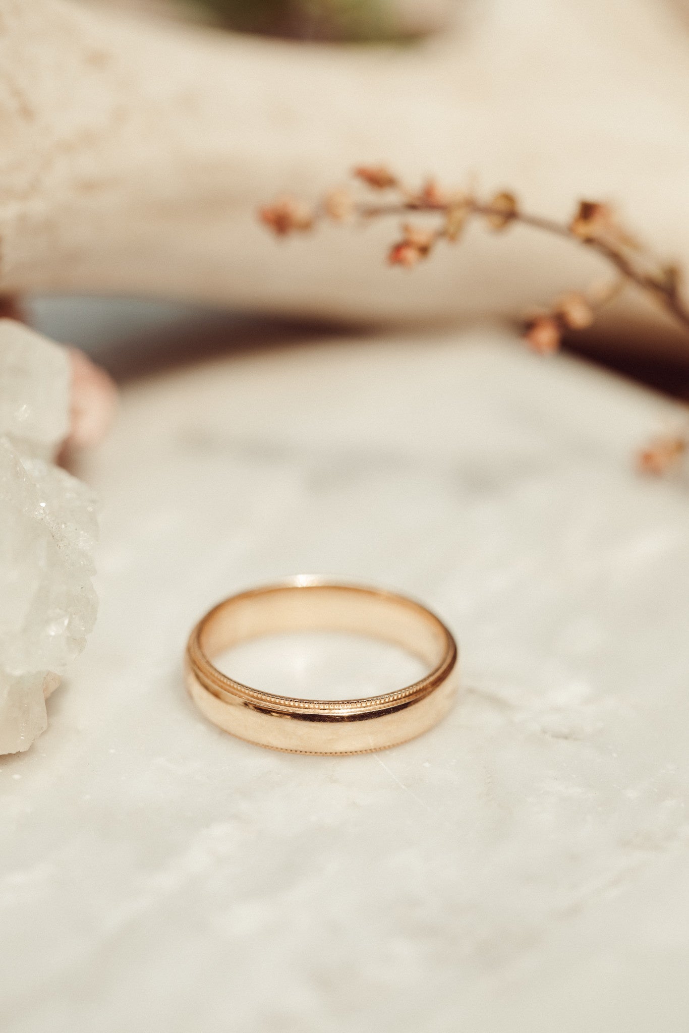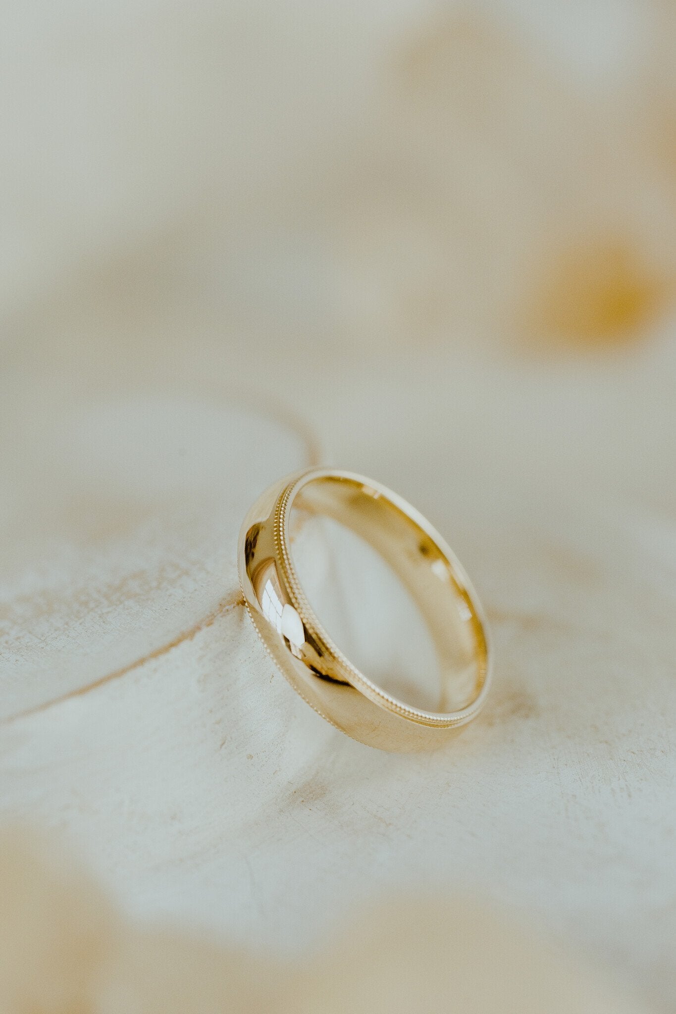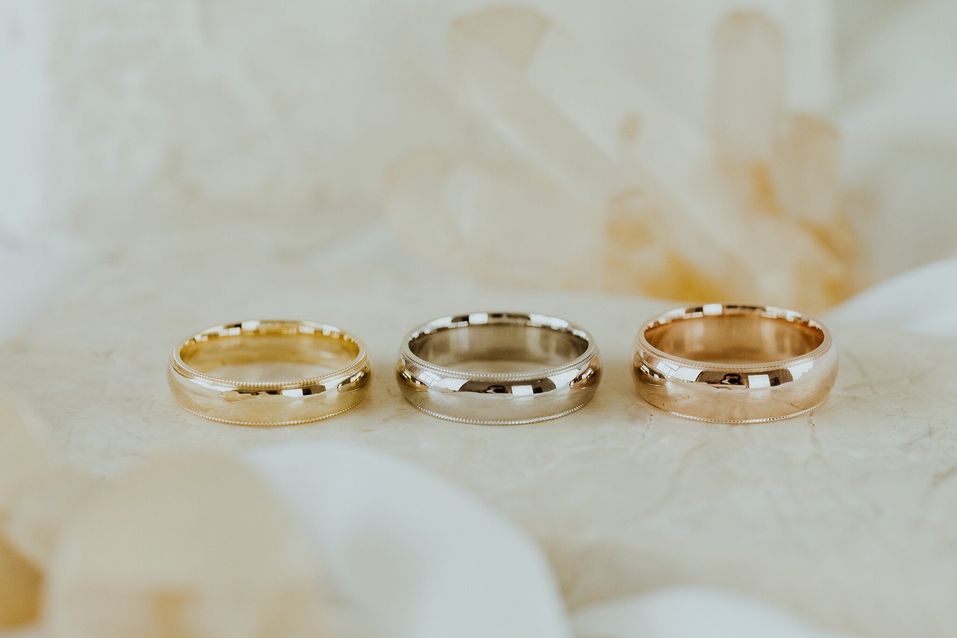 The Jasper Milgrain Band features a comfort fit interior and is available in various metal colors, widths, and finishes.