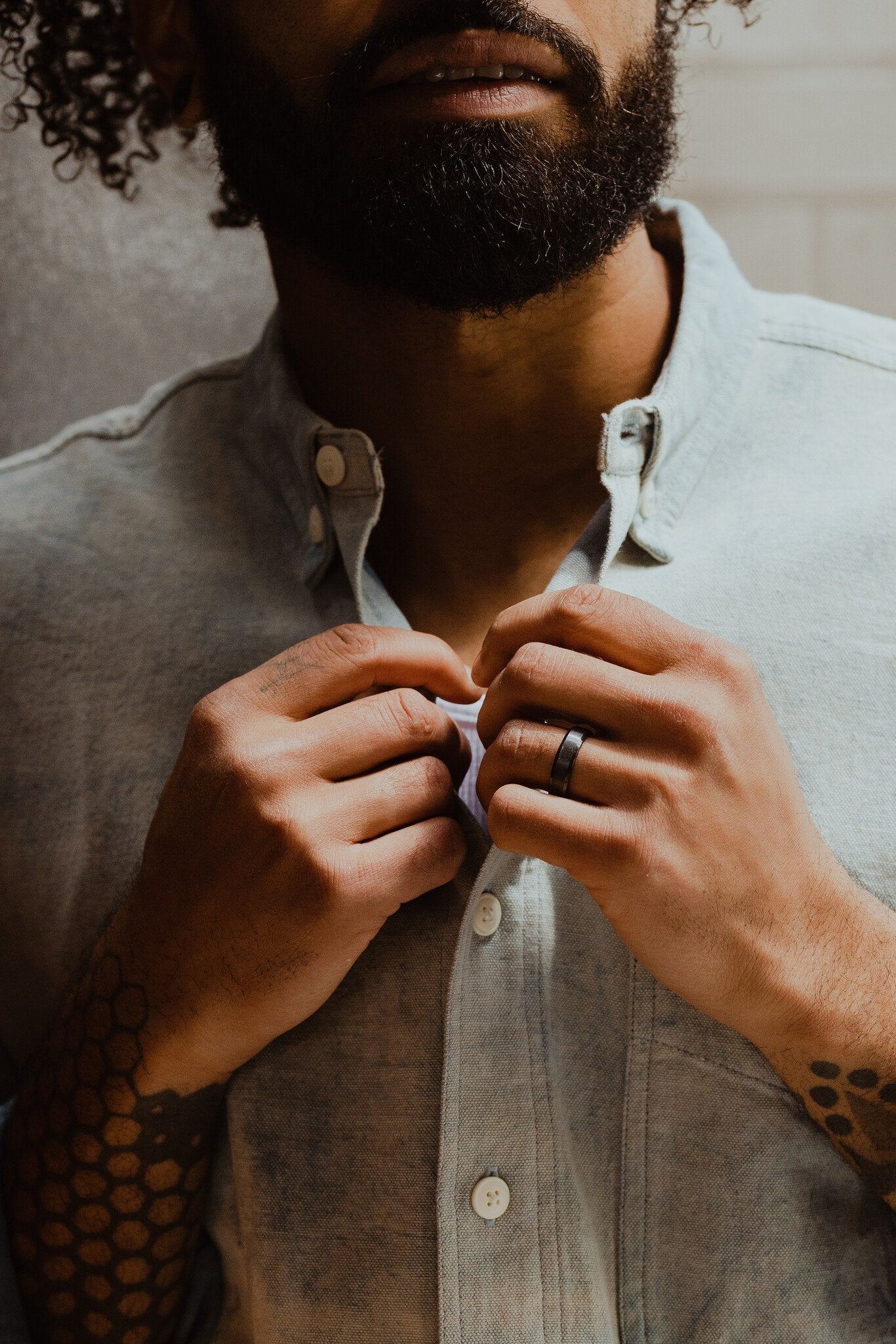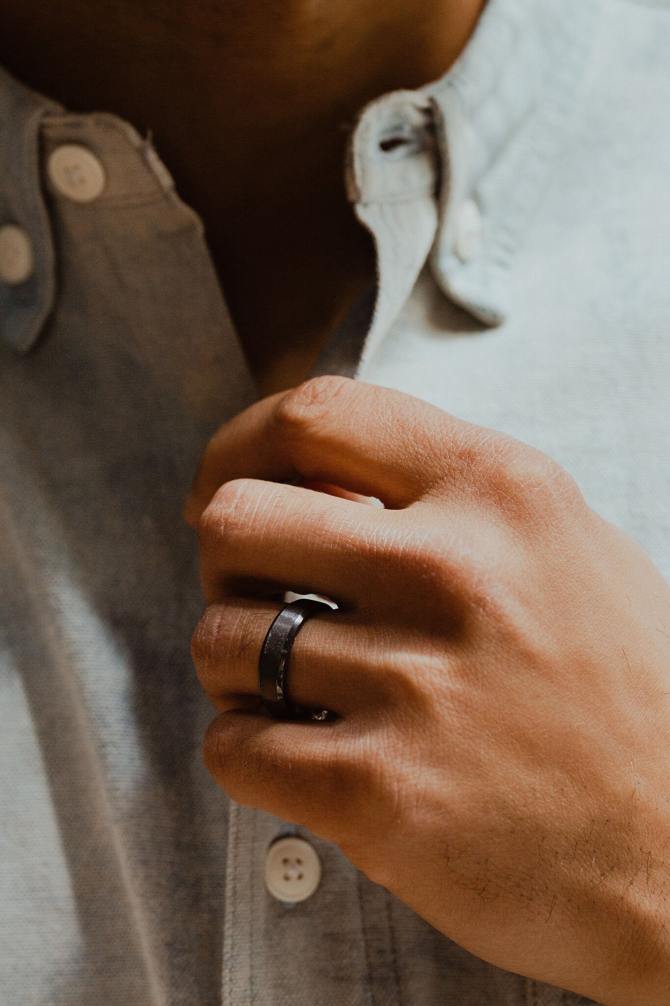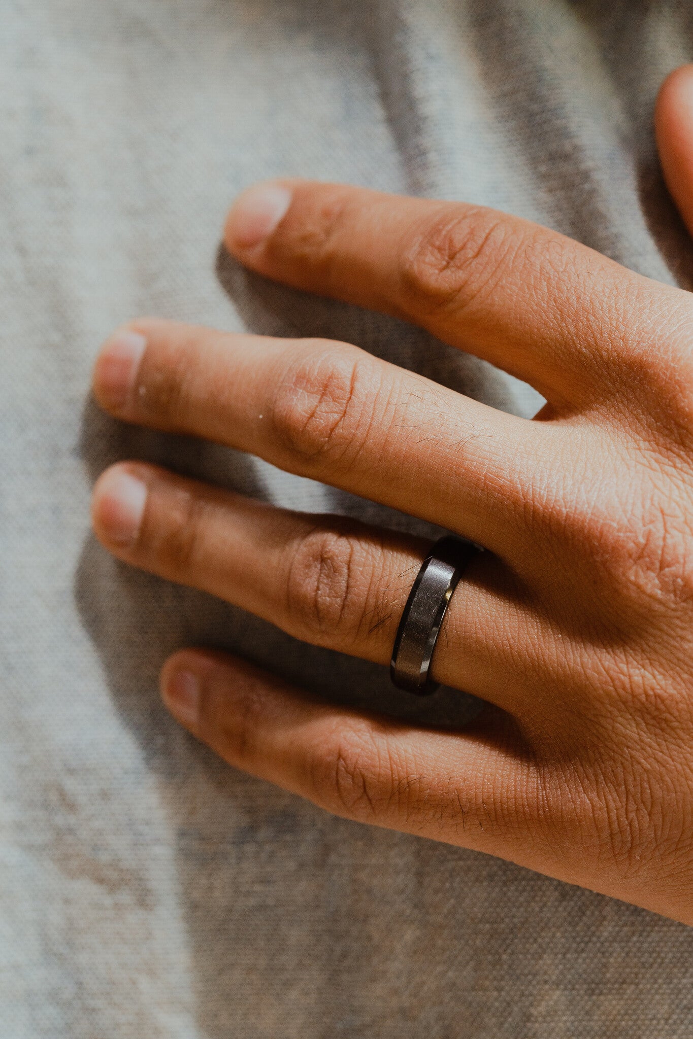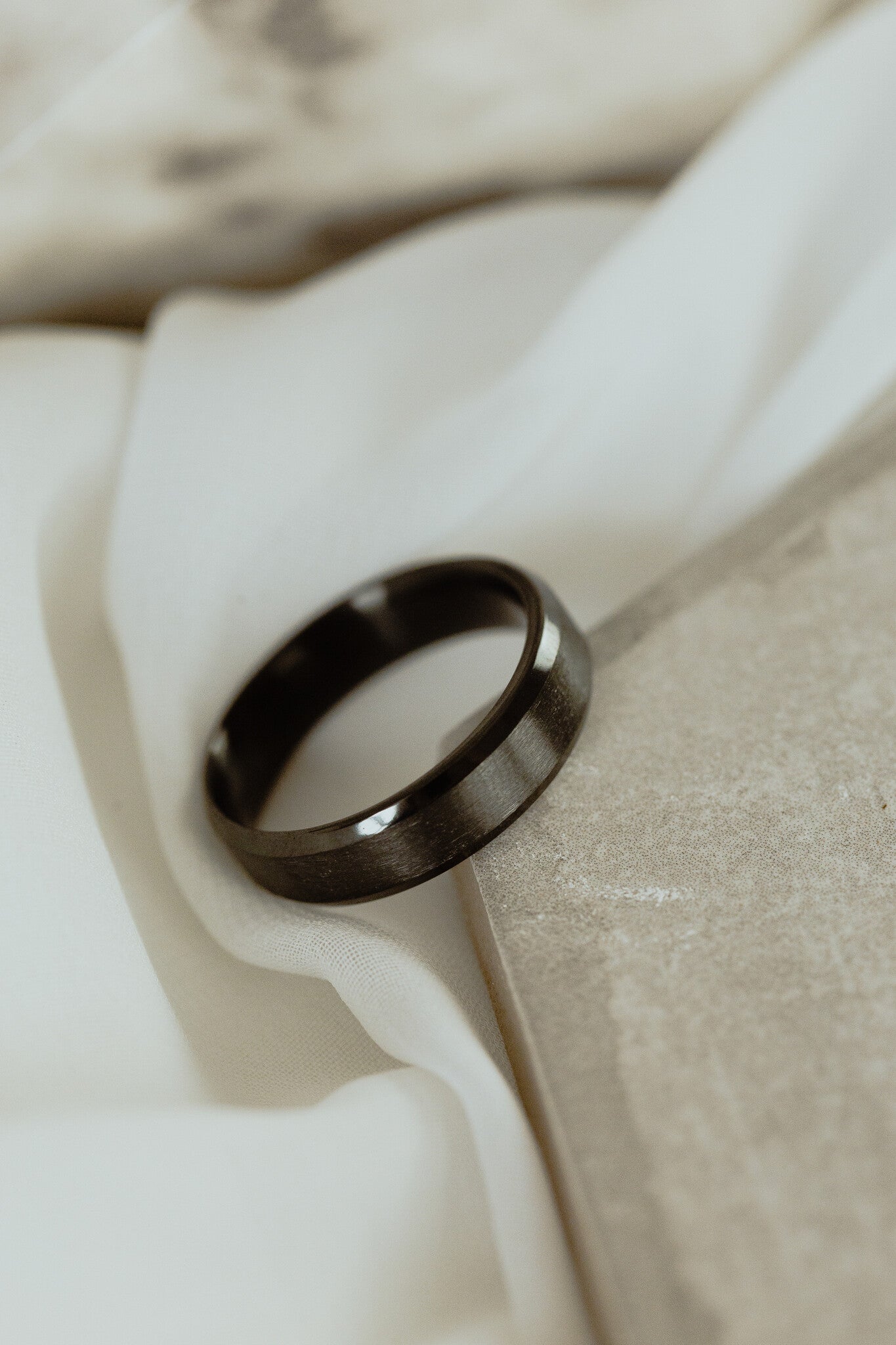 The Kai Zirconium Beveled Band features a flat band profile, a satin finish, with beveled edges. Zirconium bands are very durable, shatterproof, and retain their black color without replating.