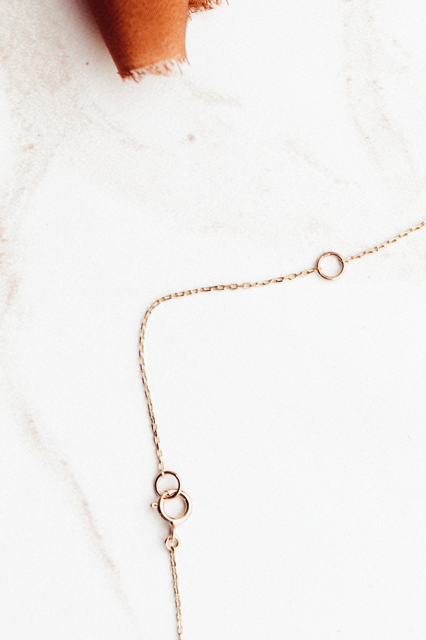 This 14k gold necklace features a 10x4mm long hexagon black spinel in a high polish bezel set east/west, with a small square iolite dangle.