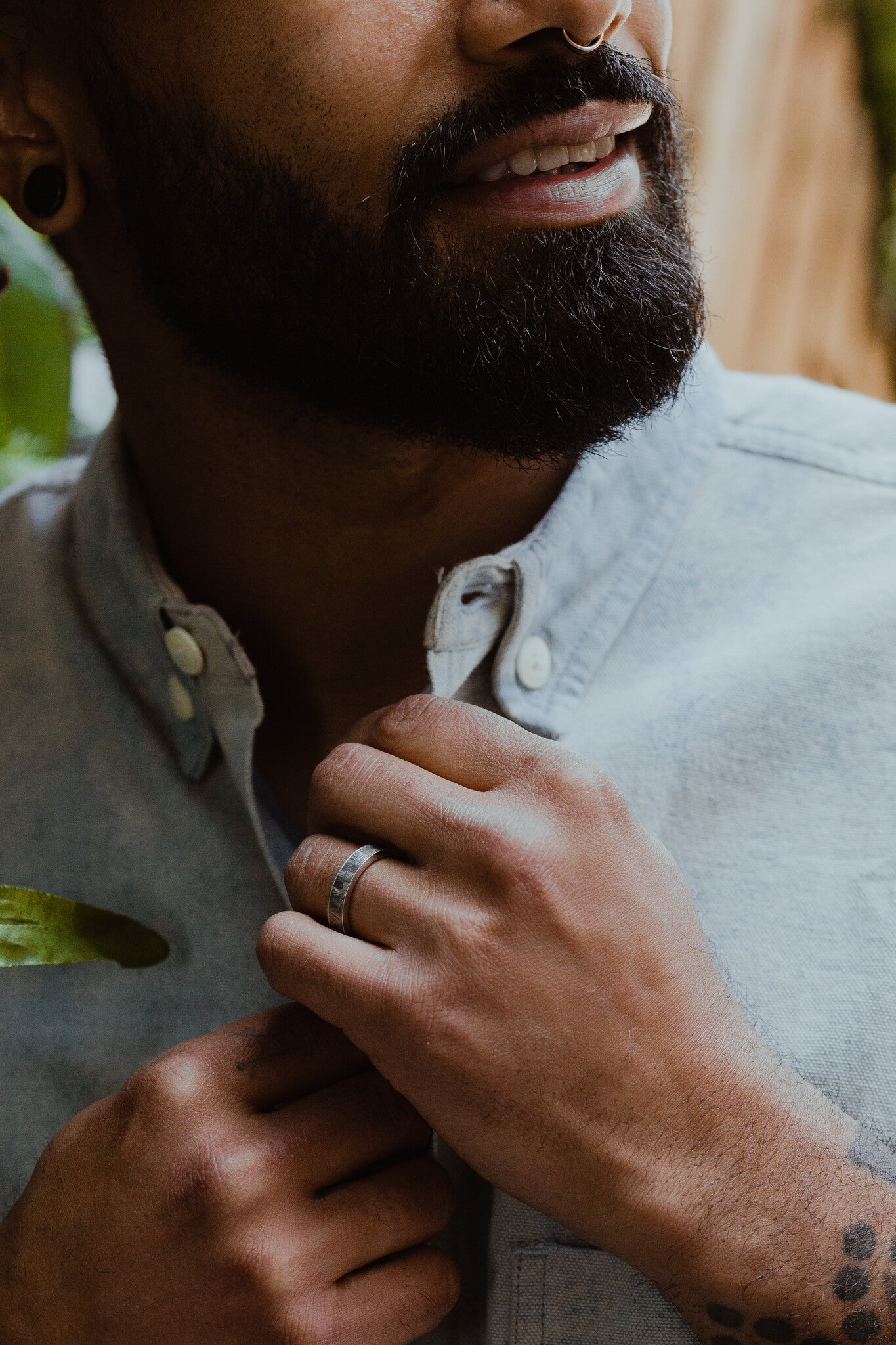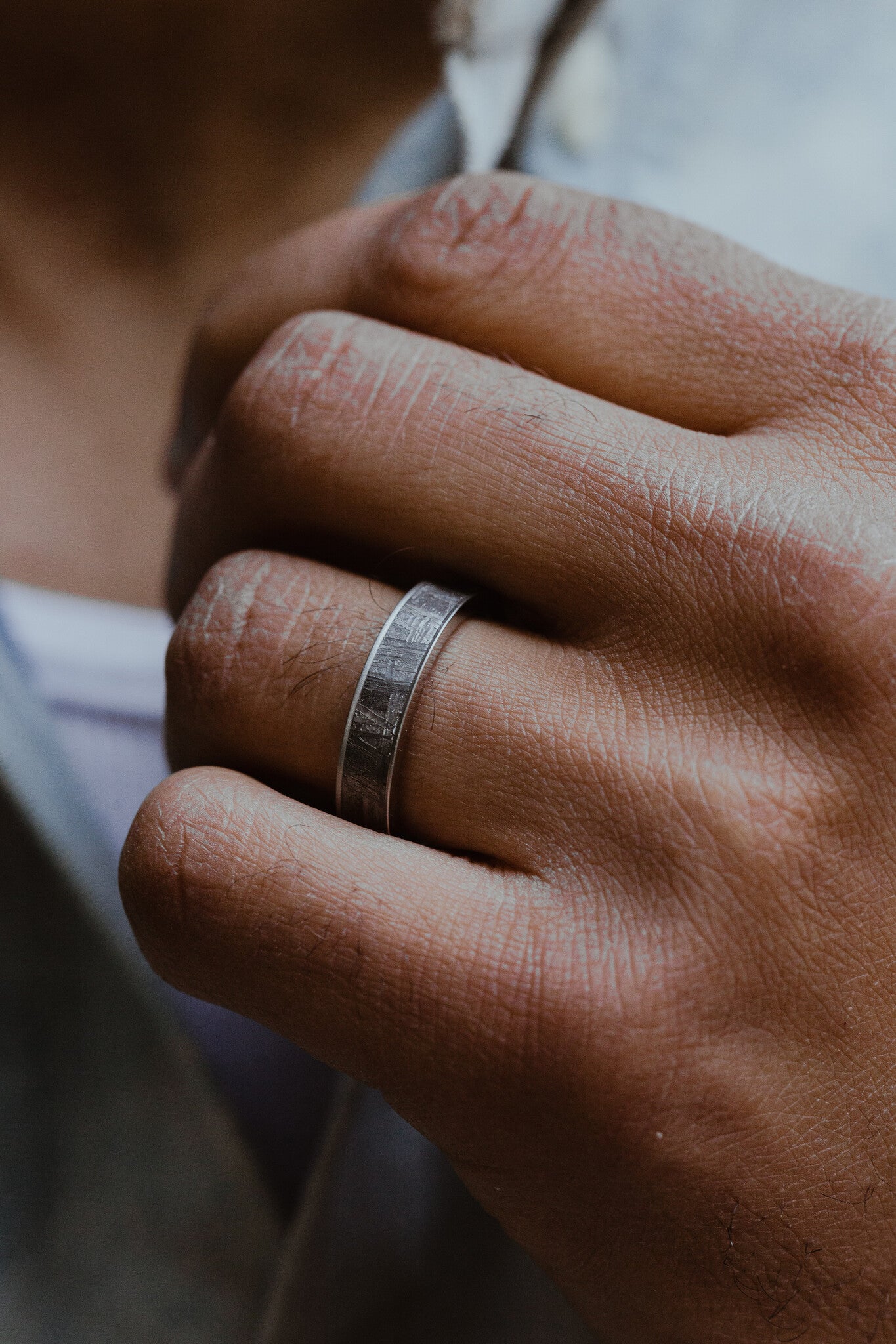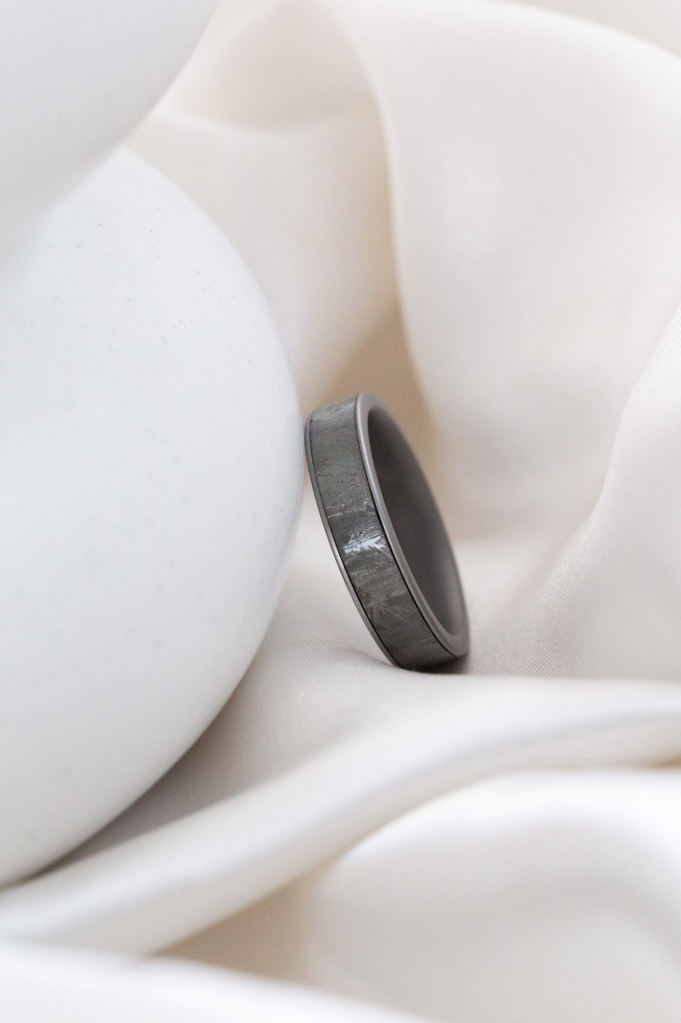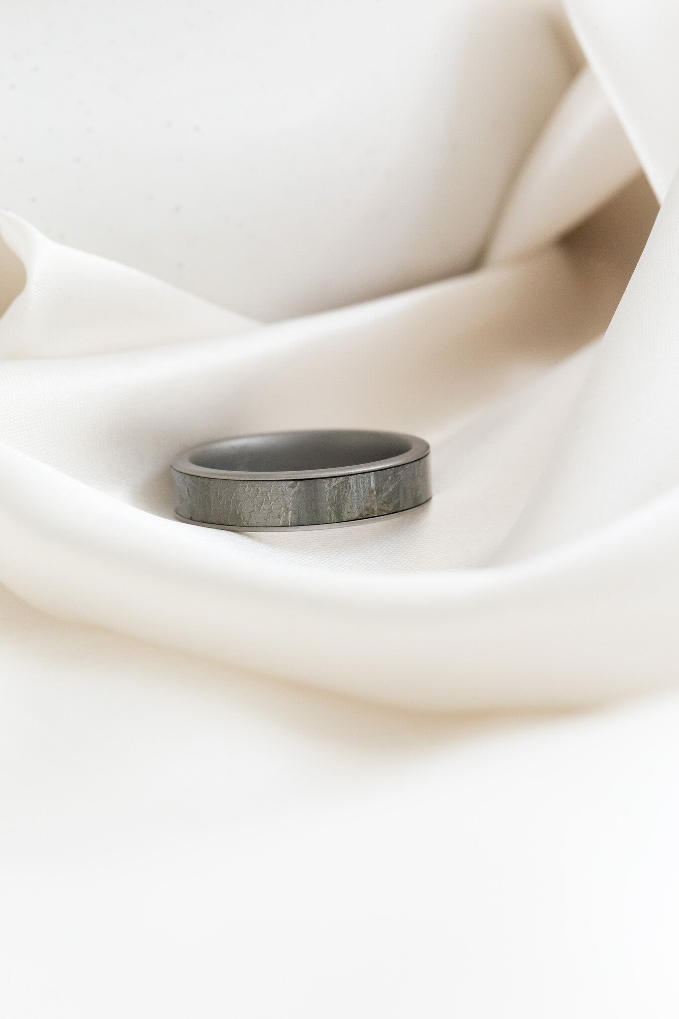 The Maverick Meteorite Band features a meteorite inlay set in a cobalt casing. Cobalt bands are lightweight, hypoallergenic, and have a platinum color.