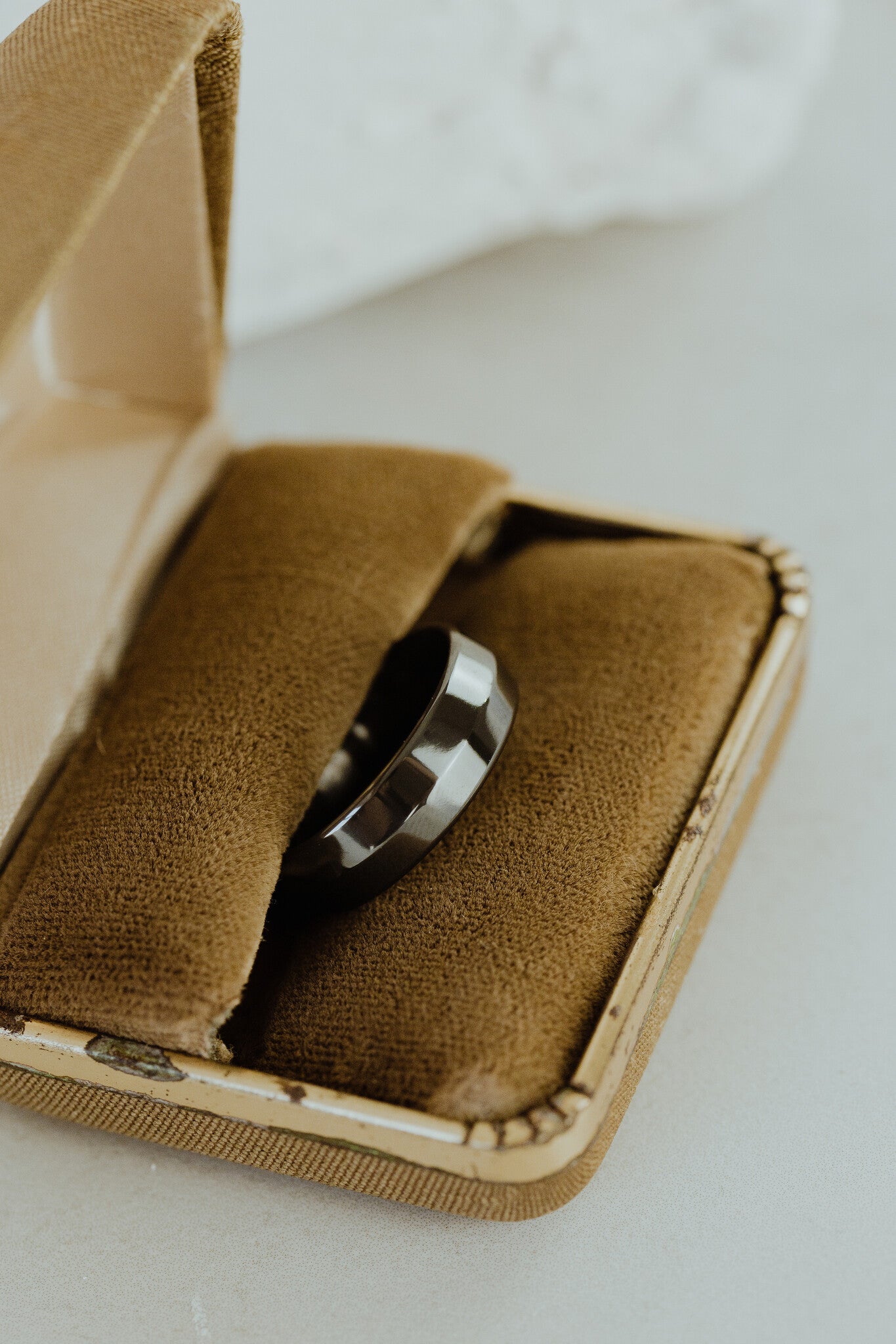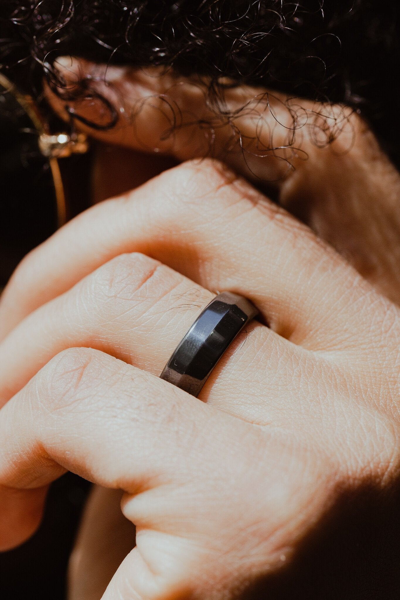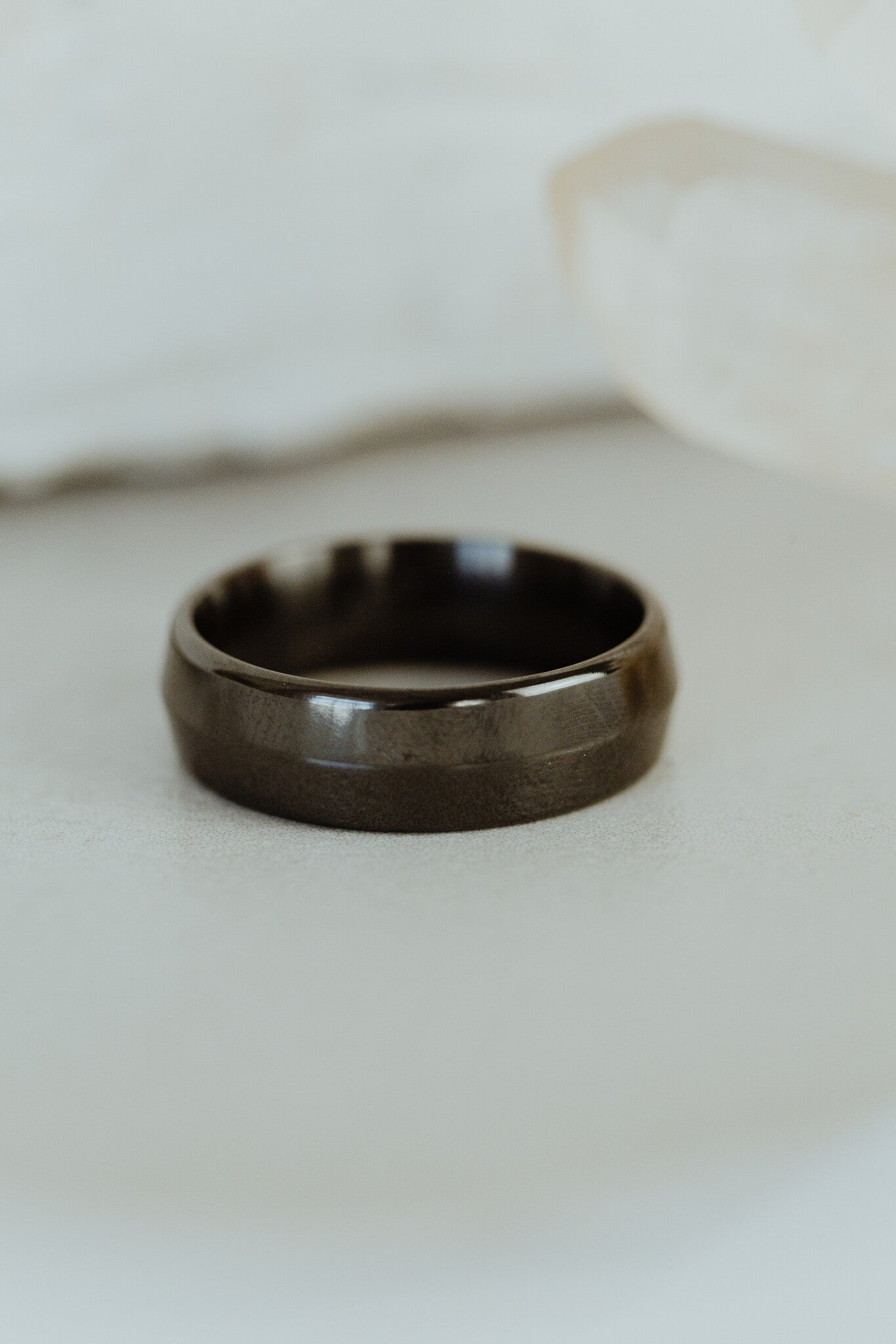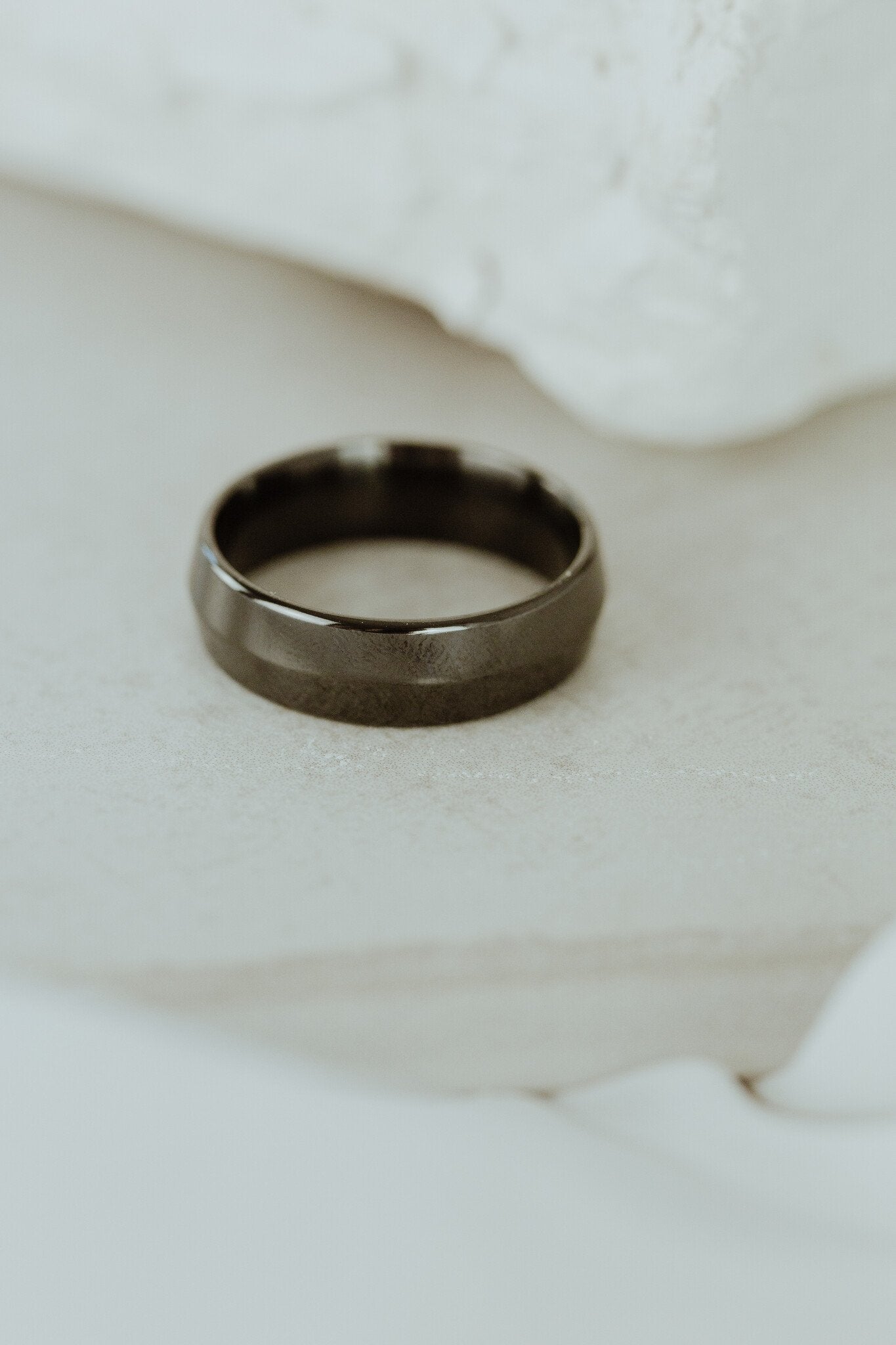 The Nico Zirconium Knife Edge Band features a knife edge profile with a high polish finish. Zirconium bands are very durable, shatterproof, and retain their black color without replating.