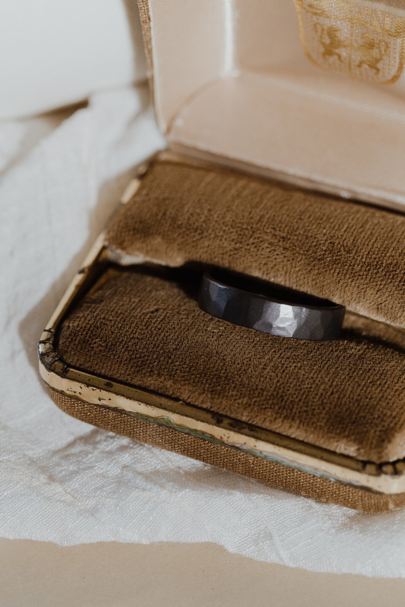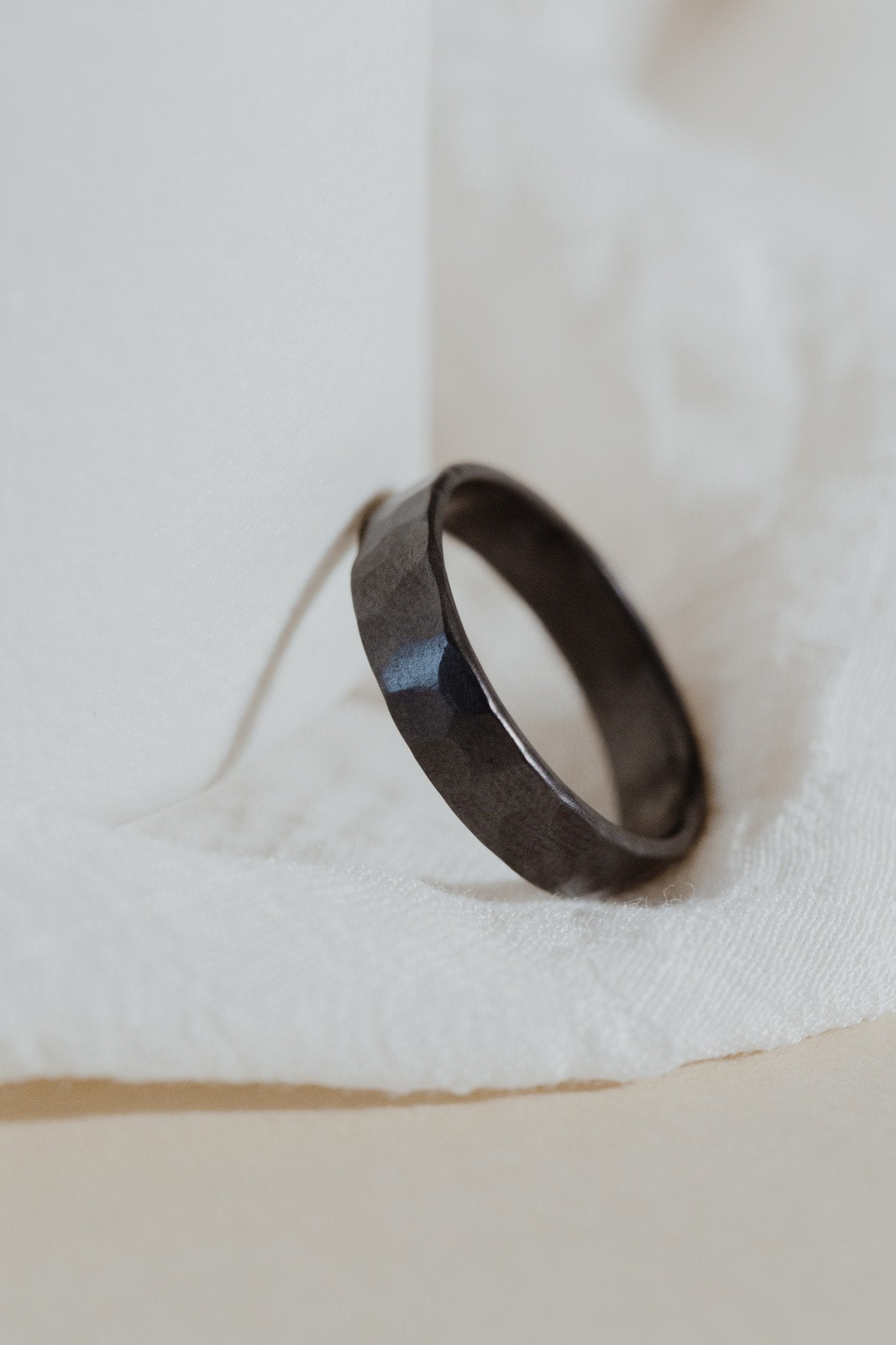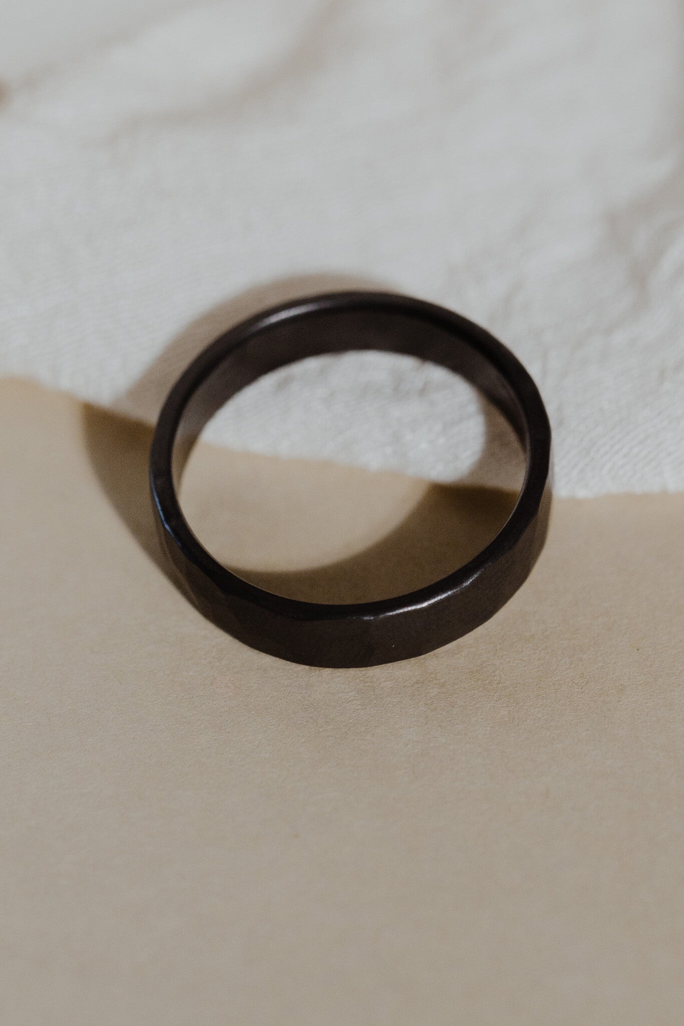 We've added another option for fans of our Quinn Hand Forged Band! The Quinn Zirconium Hand Forged Band features a flat band profile with a hand-forged texture and satin finish. Zirconium bands are very durable, shatterproof, and retain their black color without replating.