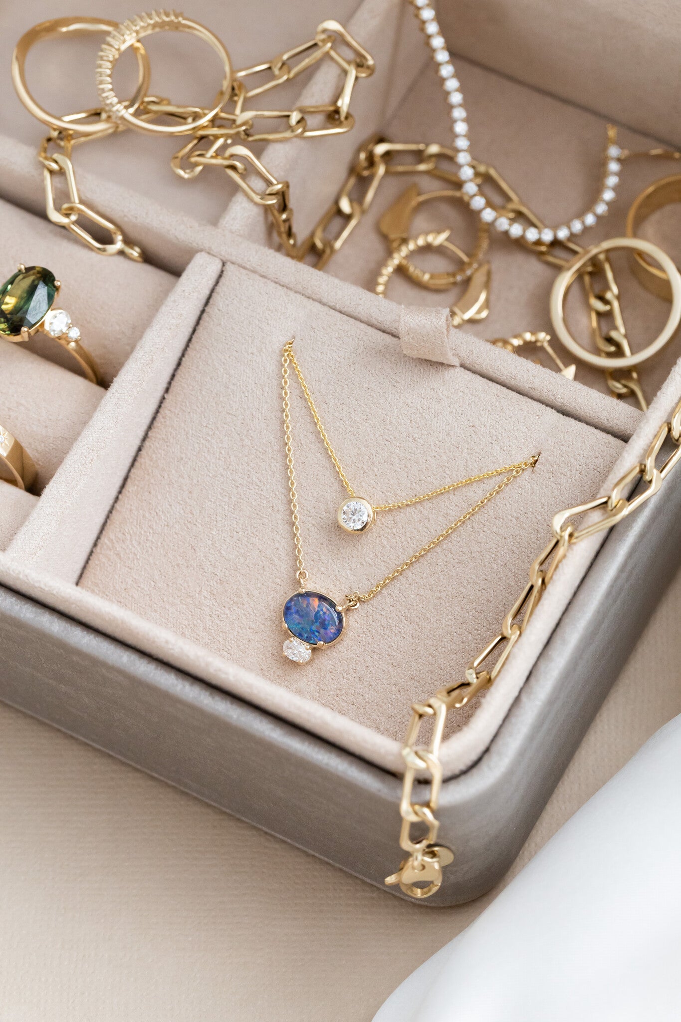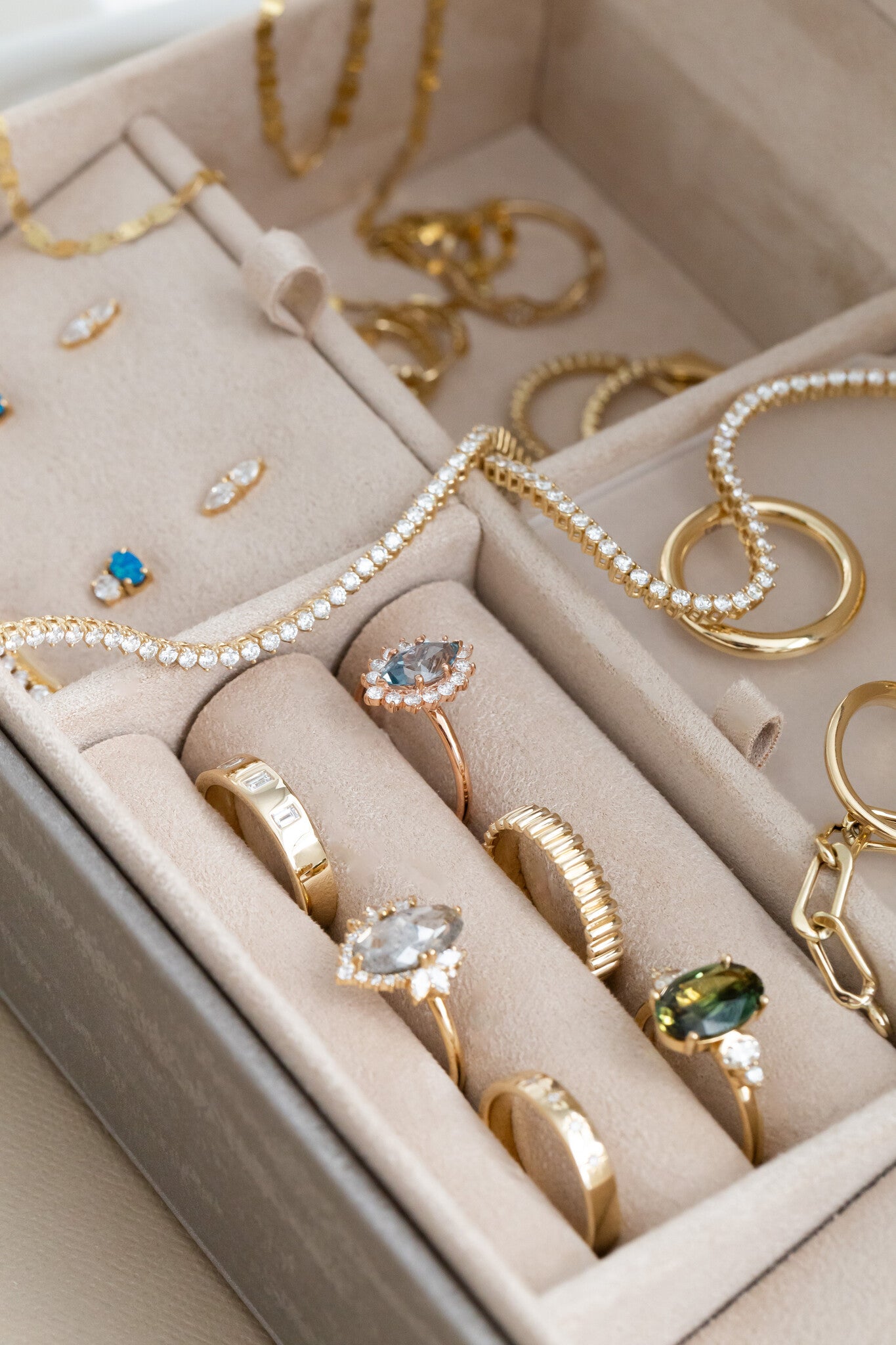 A rectangular jewelry box with a satin-finish exterior and six compartments for all your favorite pieces.