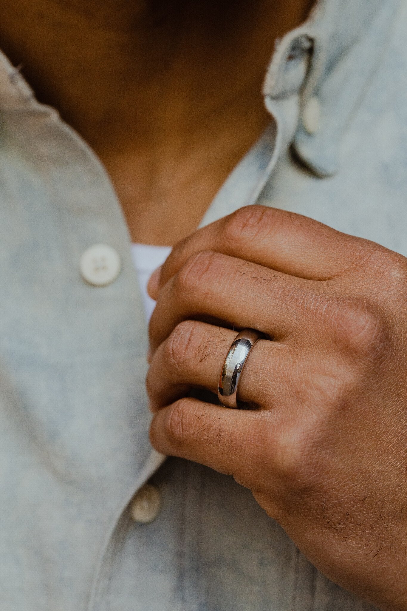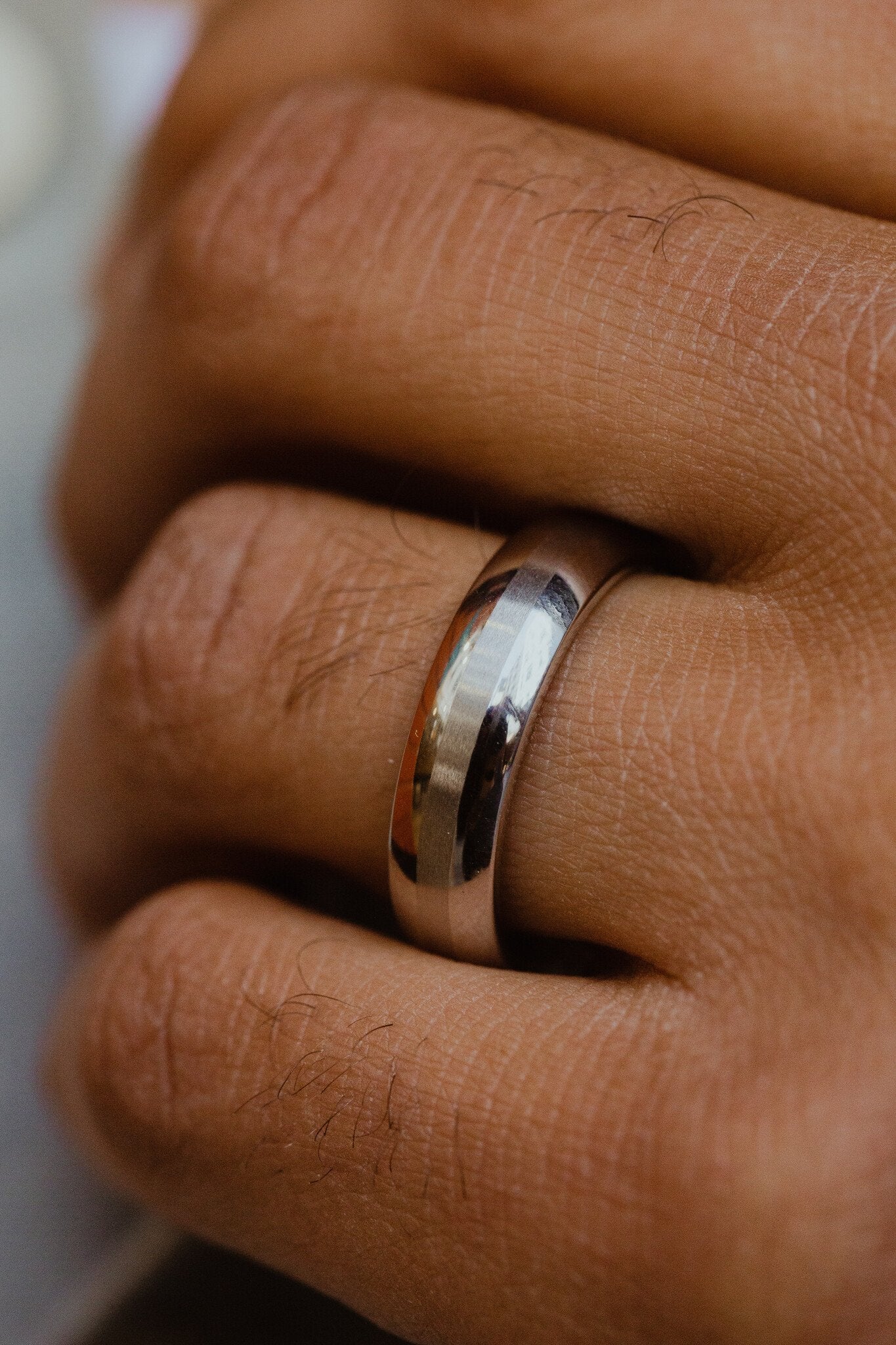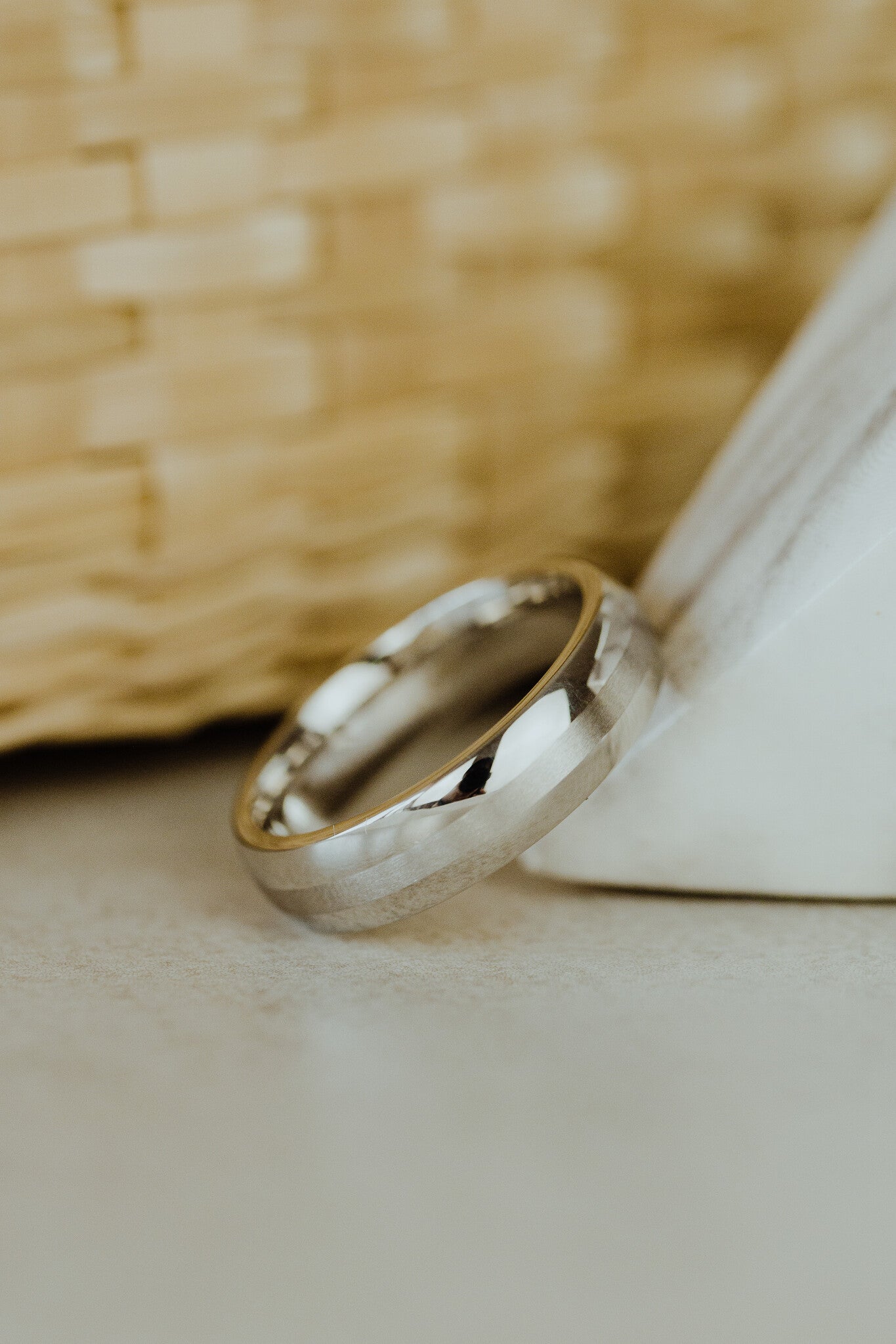 The Taylor Cobalt Stripe Band has a rounded band profile with a satin stripe running down the center of the band. These cobalt bands are lightweight and hypoallergenic and have a platinum color.