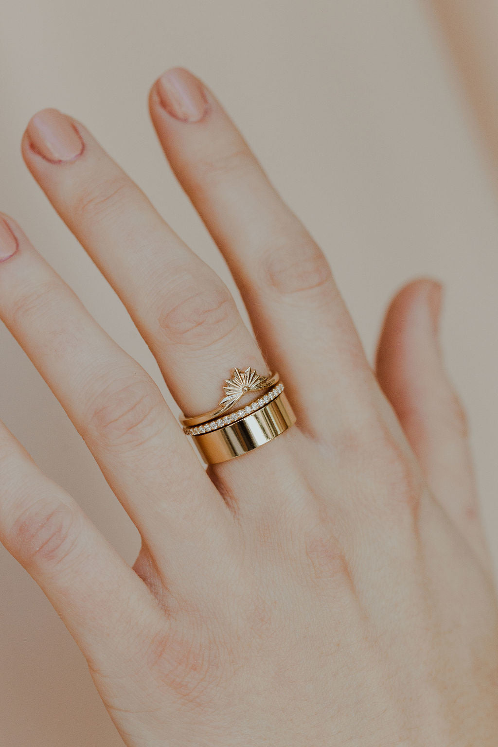 The perfect addition to any stack or a simple wedding band with a modern feel.