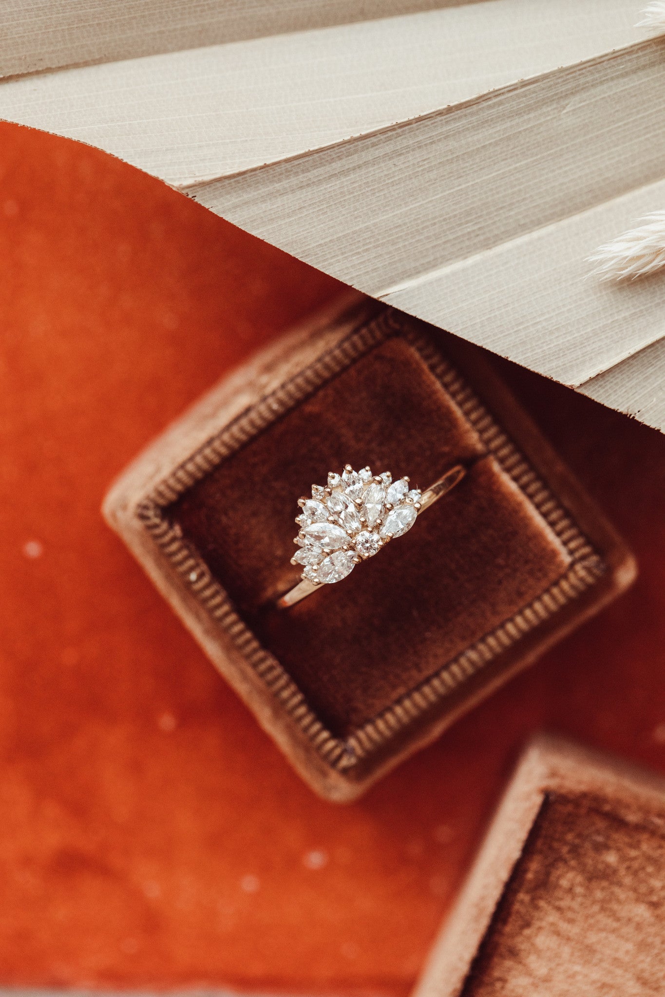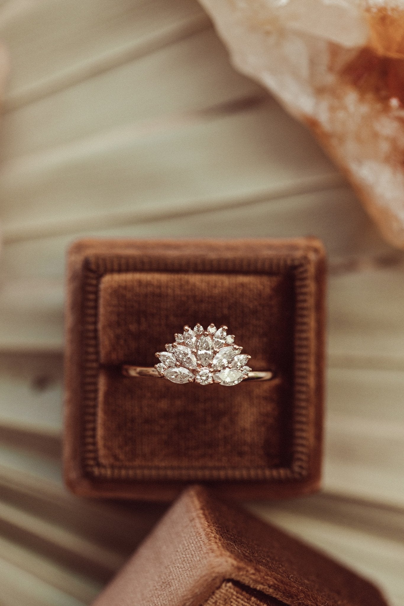 Meaning "moon" in Spanish, The Luna Band has .60 ct marquise and round diamonds in a fan shape.