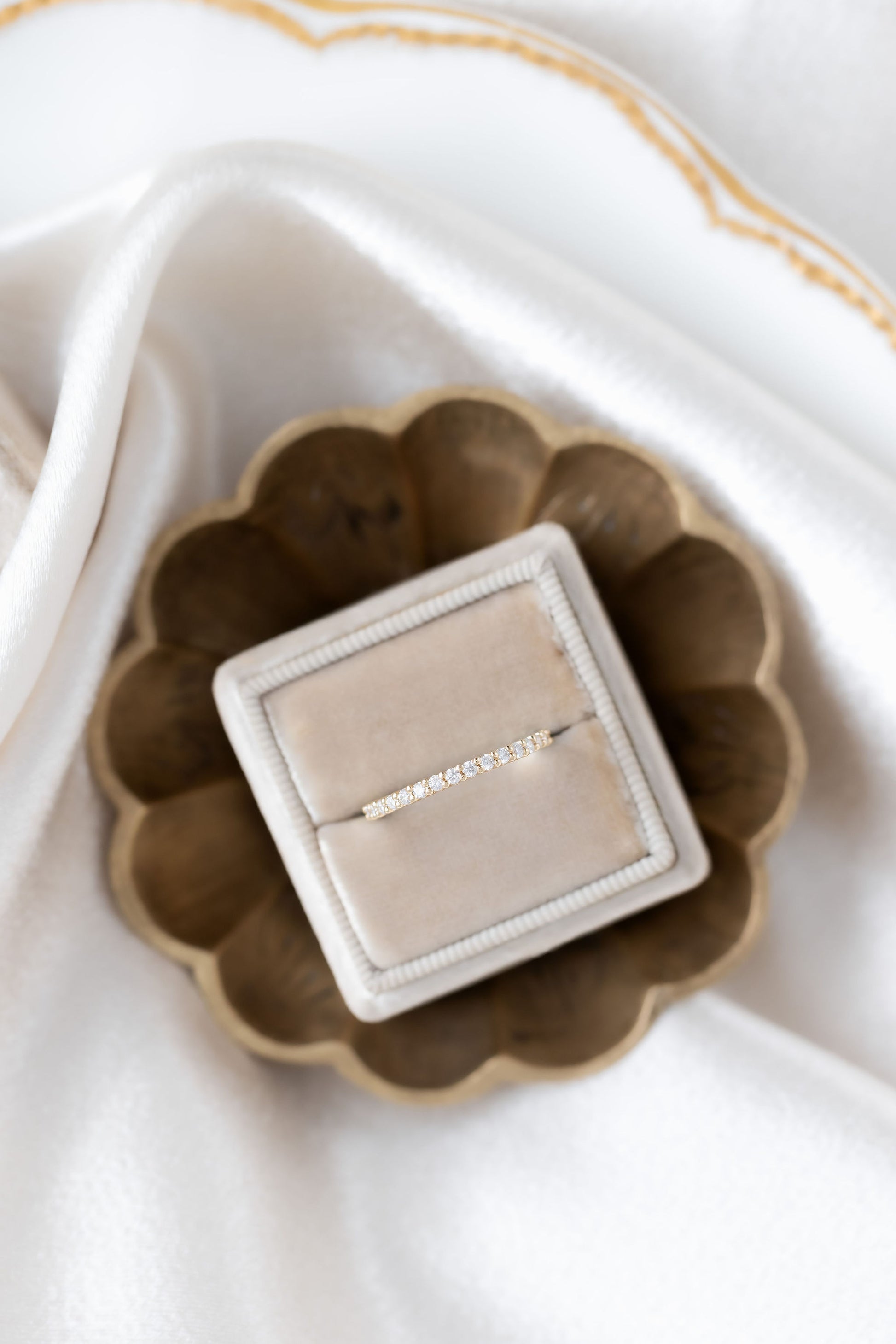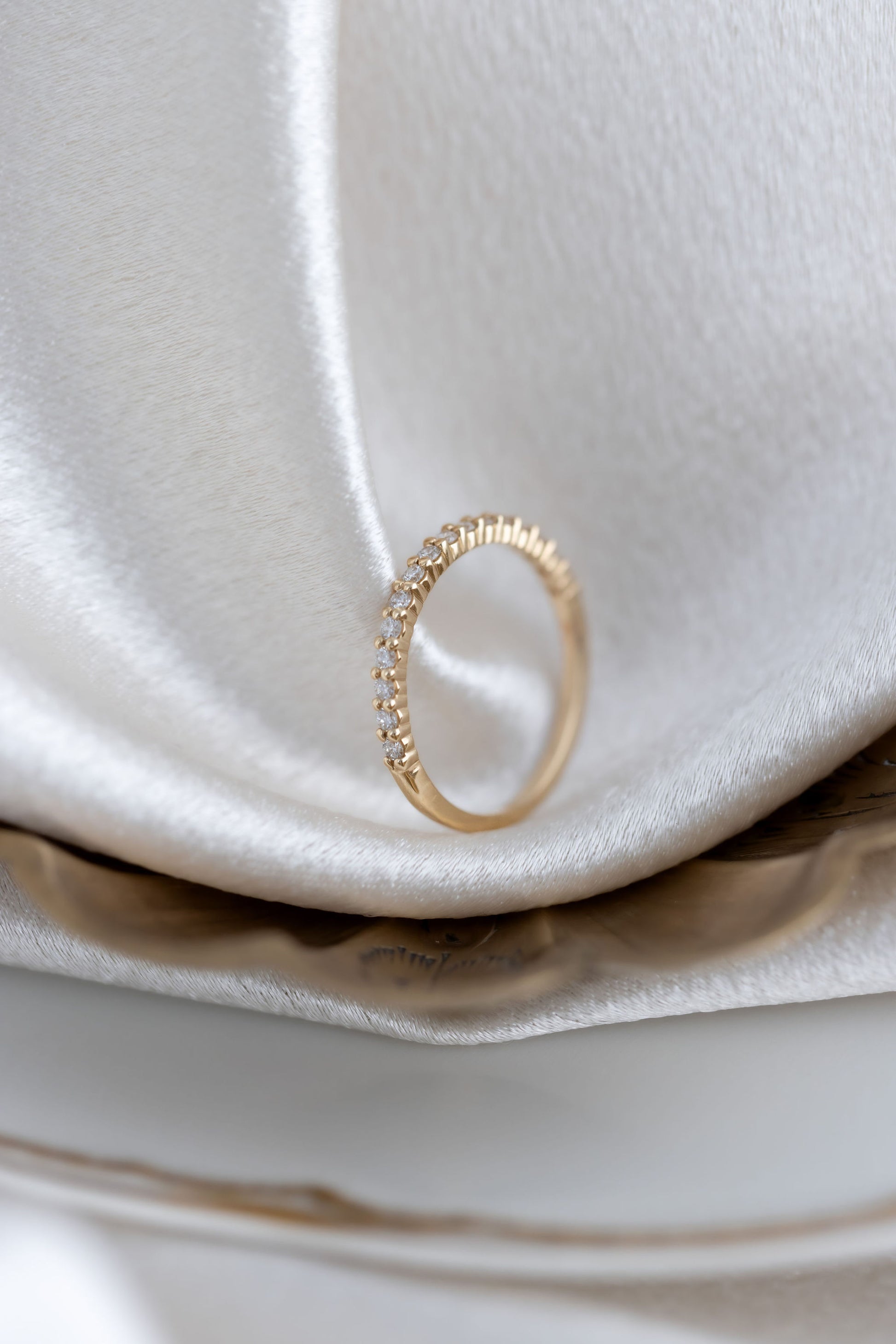 The Mini Nicole Diamond Band features .30 ct round diamonds set in prongs in a single-row band design.