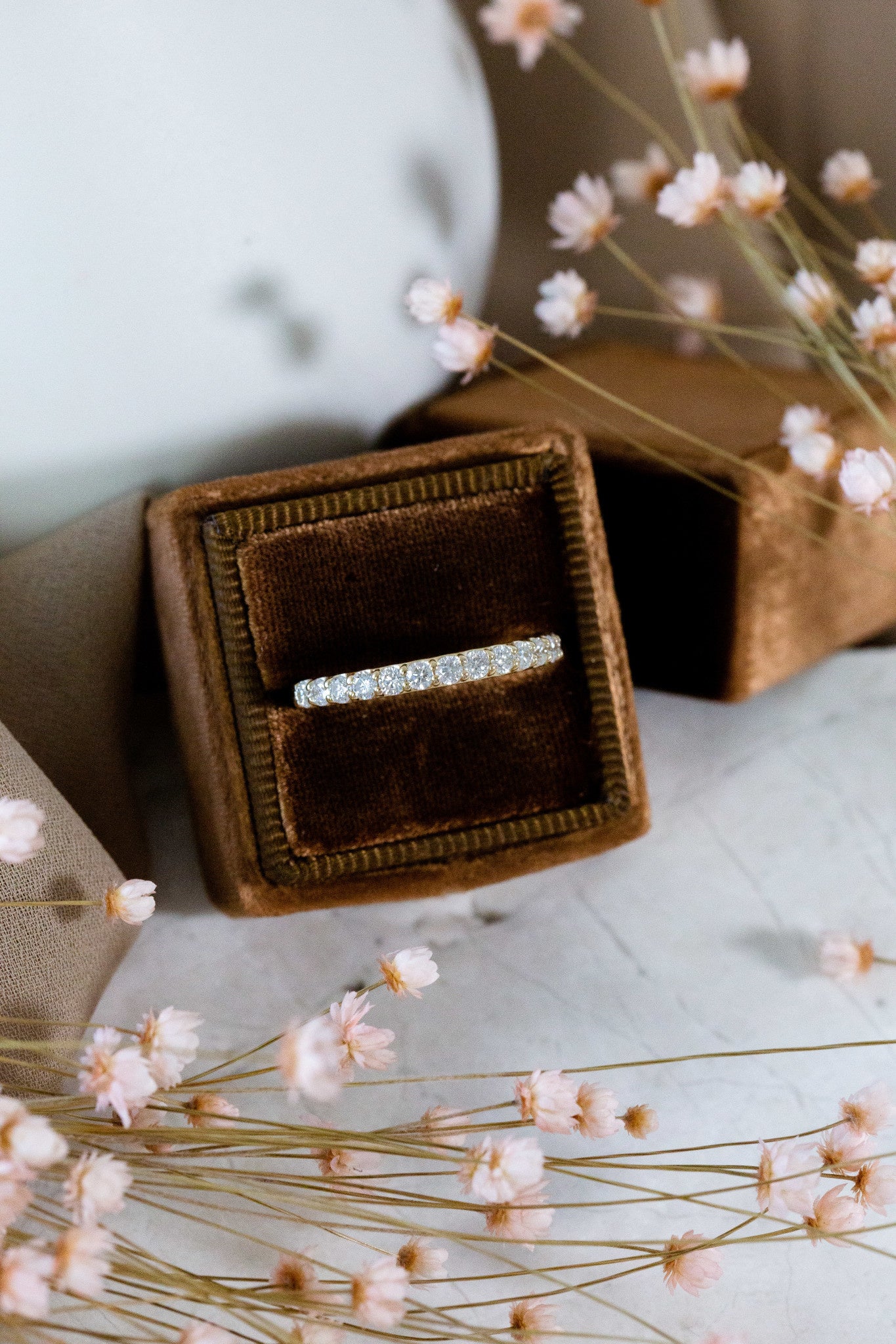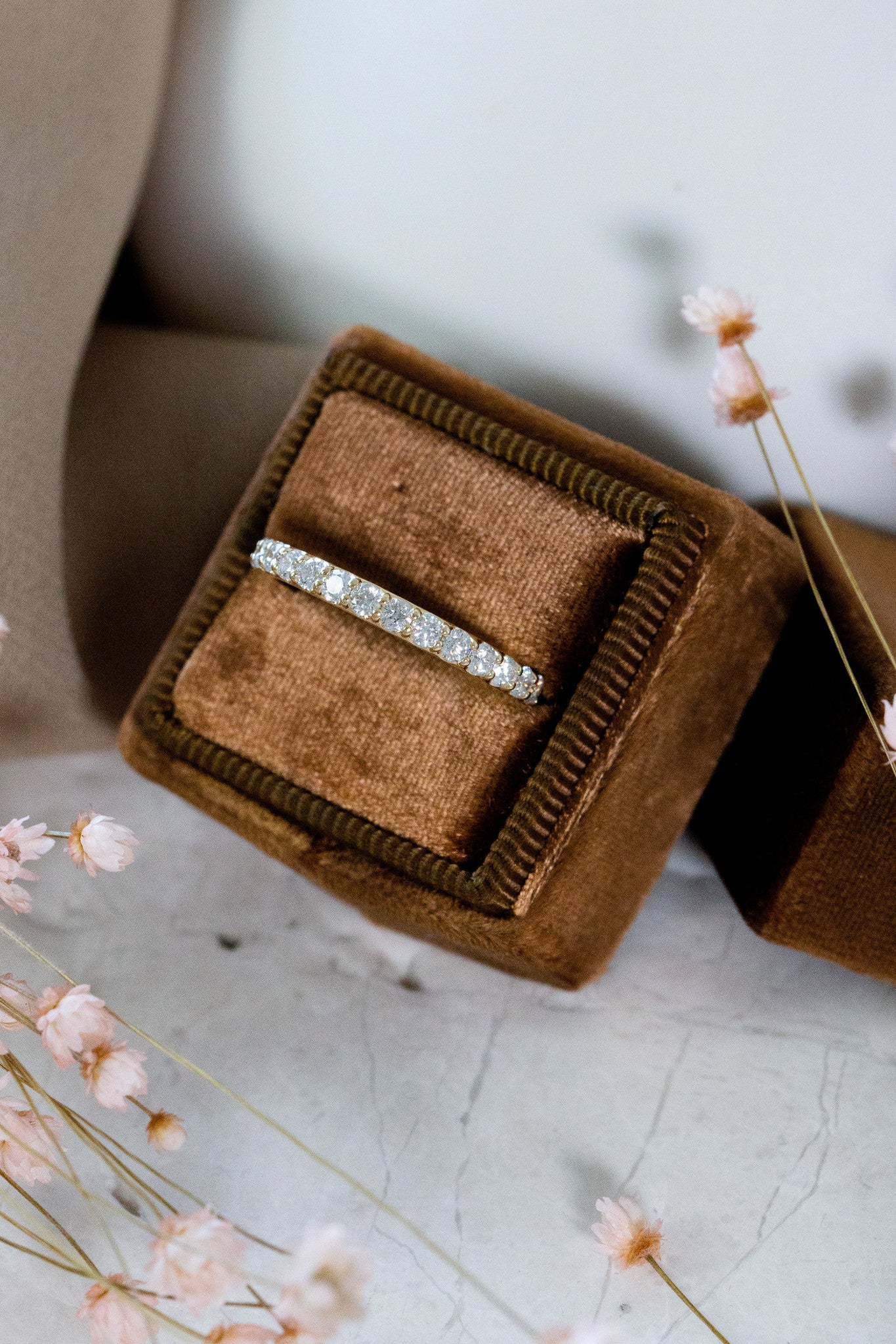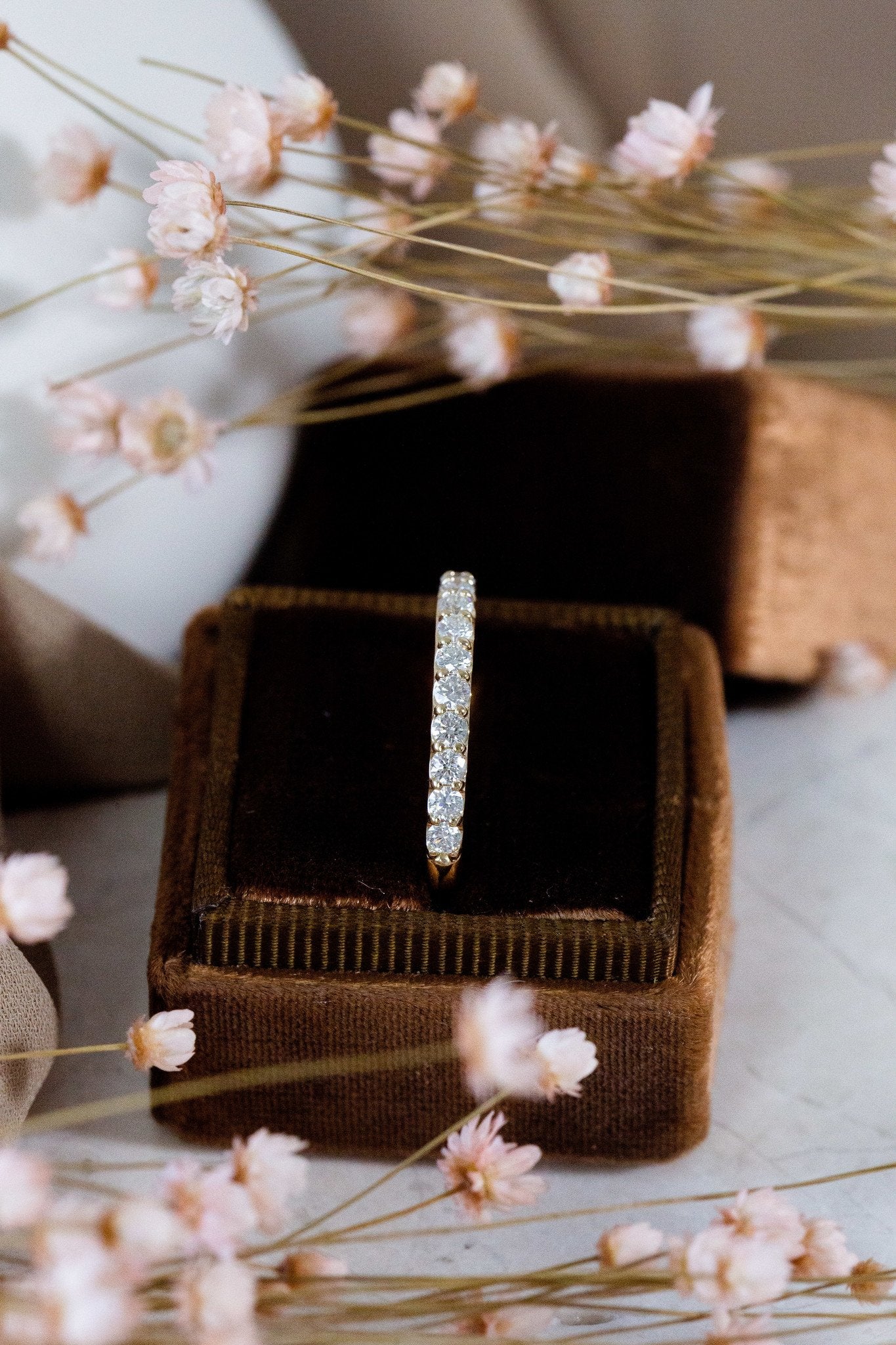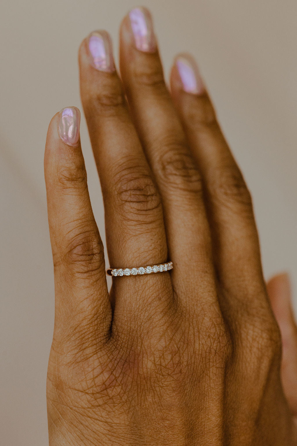 The Monica Diamond Band features .50 ct round diamonds set in prongs in a single-row band design.