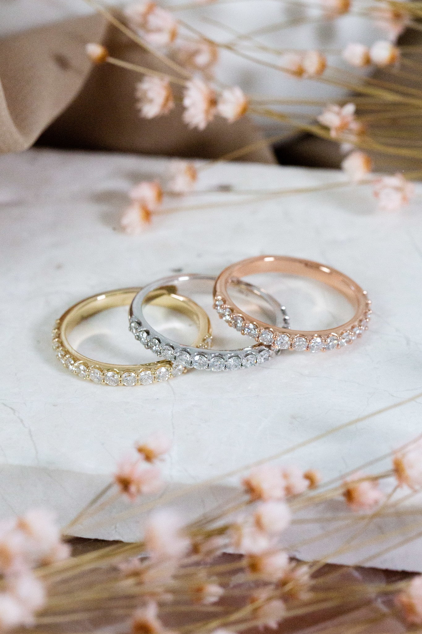 Available in rose, yellow, or white gold.