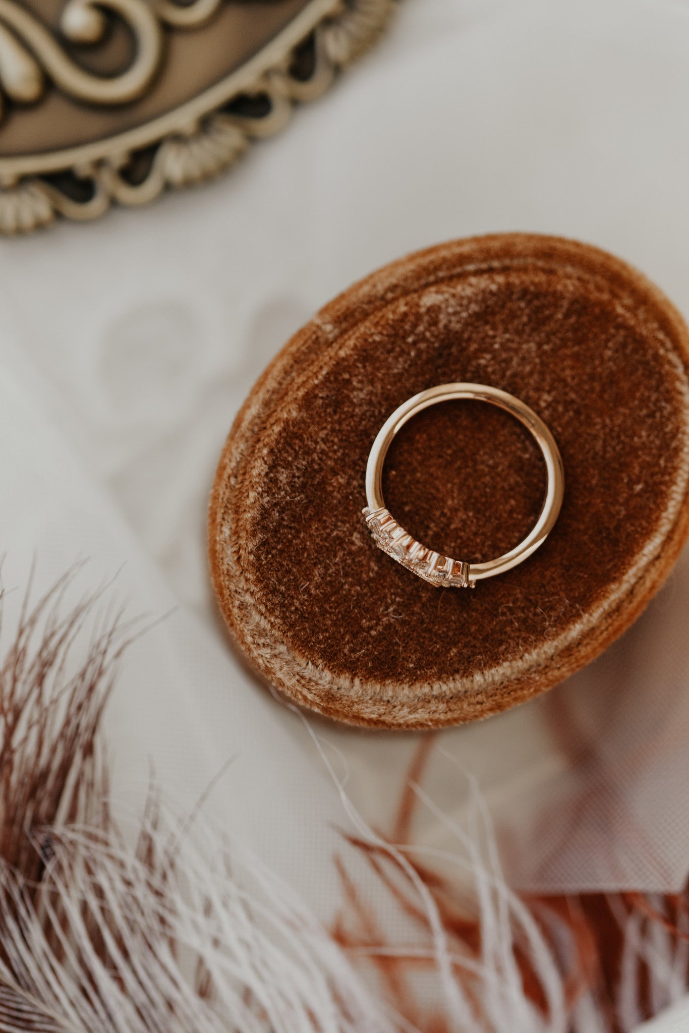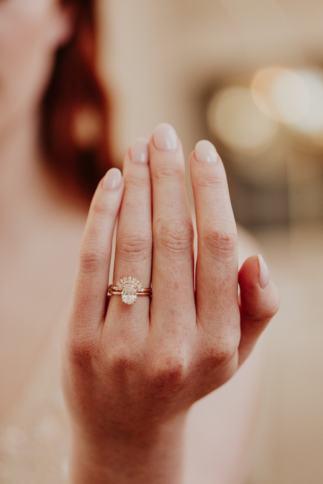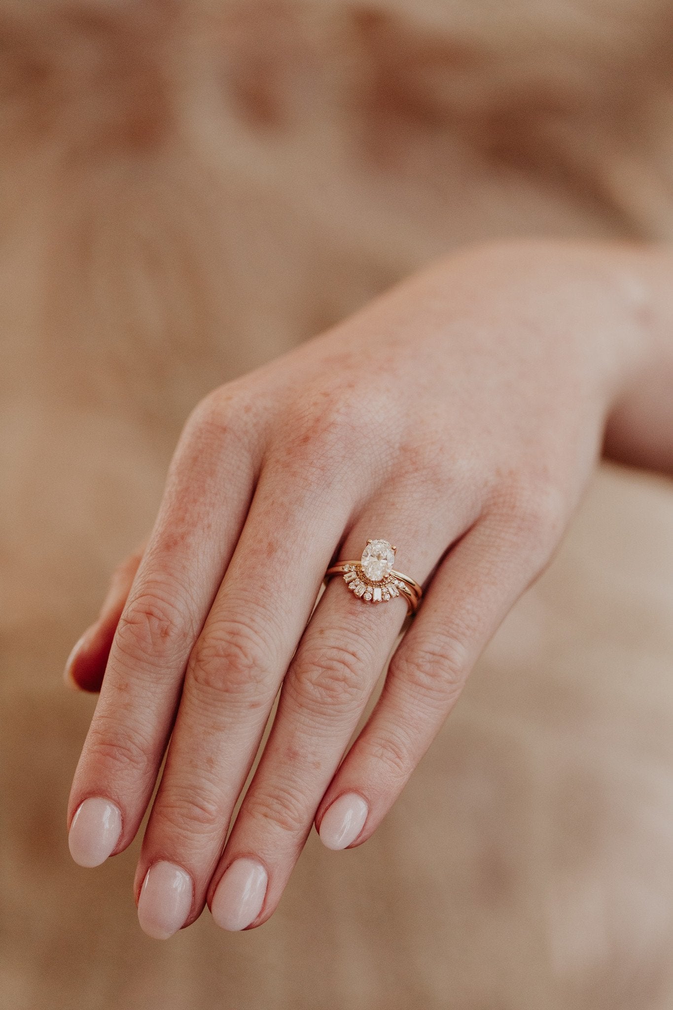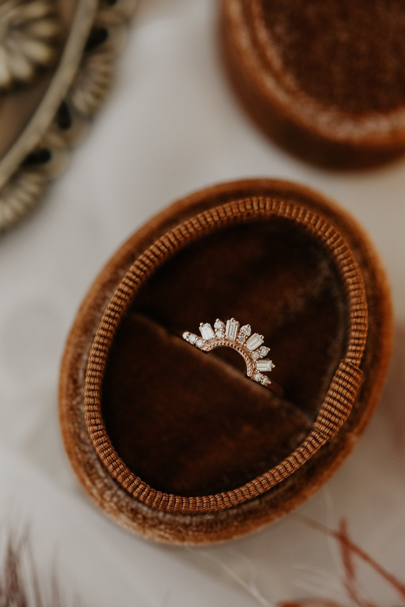 Inspired by our beloved Oxford Ring, this 14k gold band features .28 cts of double round and baguette diamonds set in prongs in a curved tracer band style with milgrain details.