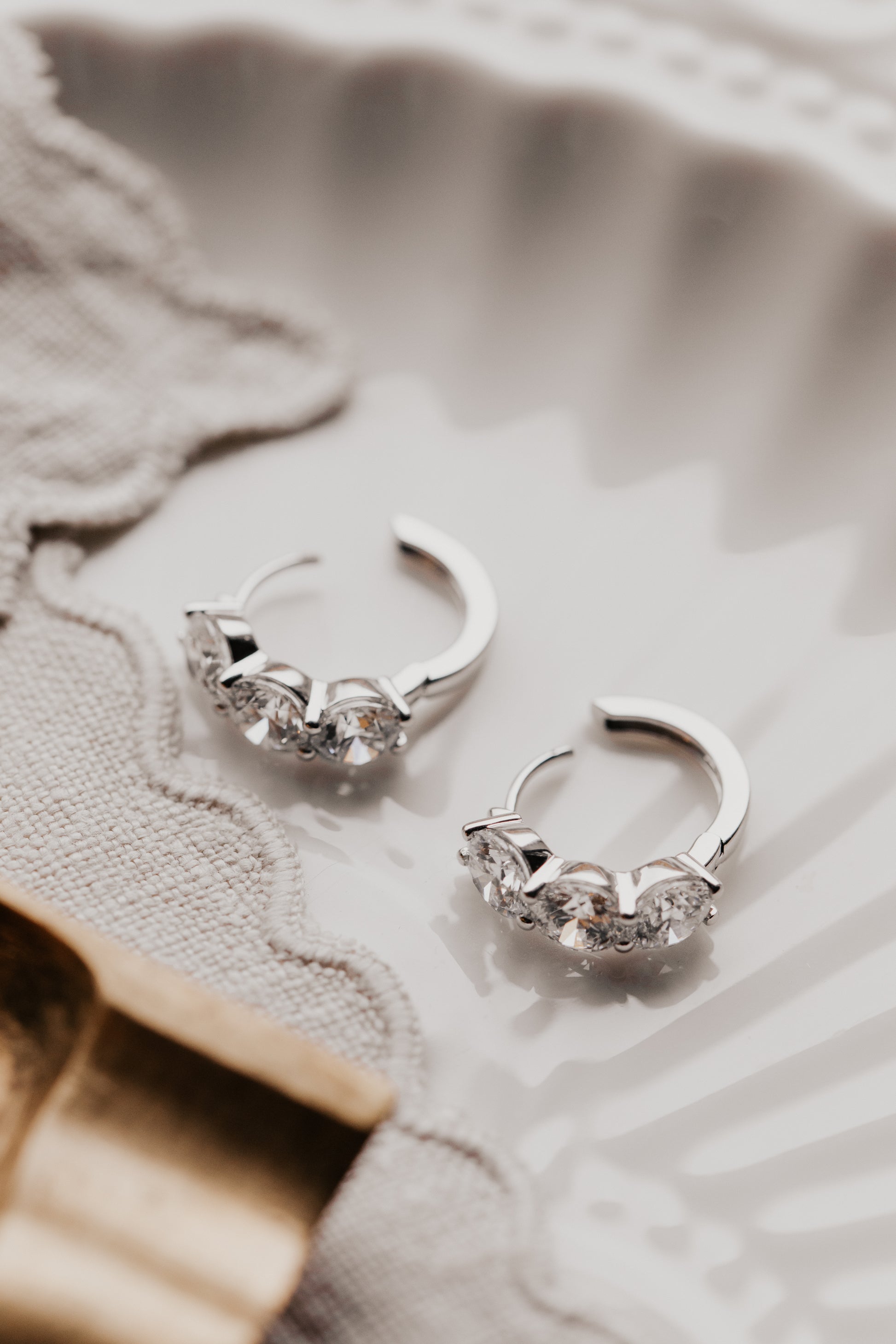 Three Lab Grown Diamond Hinged Hoop Earrings